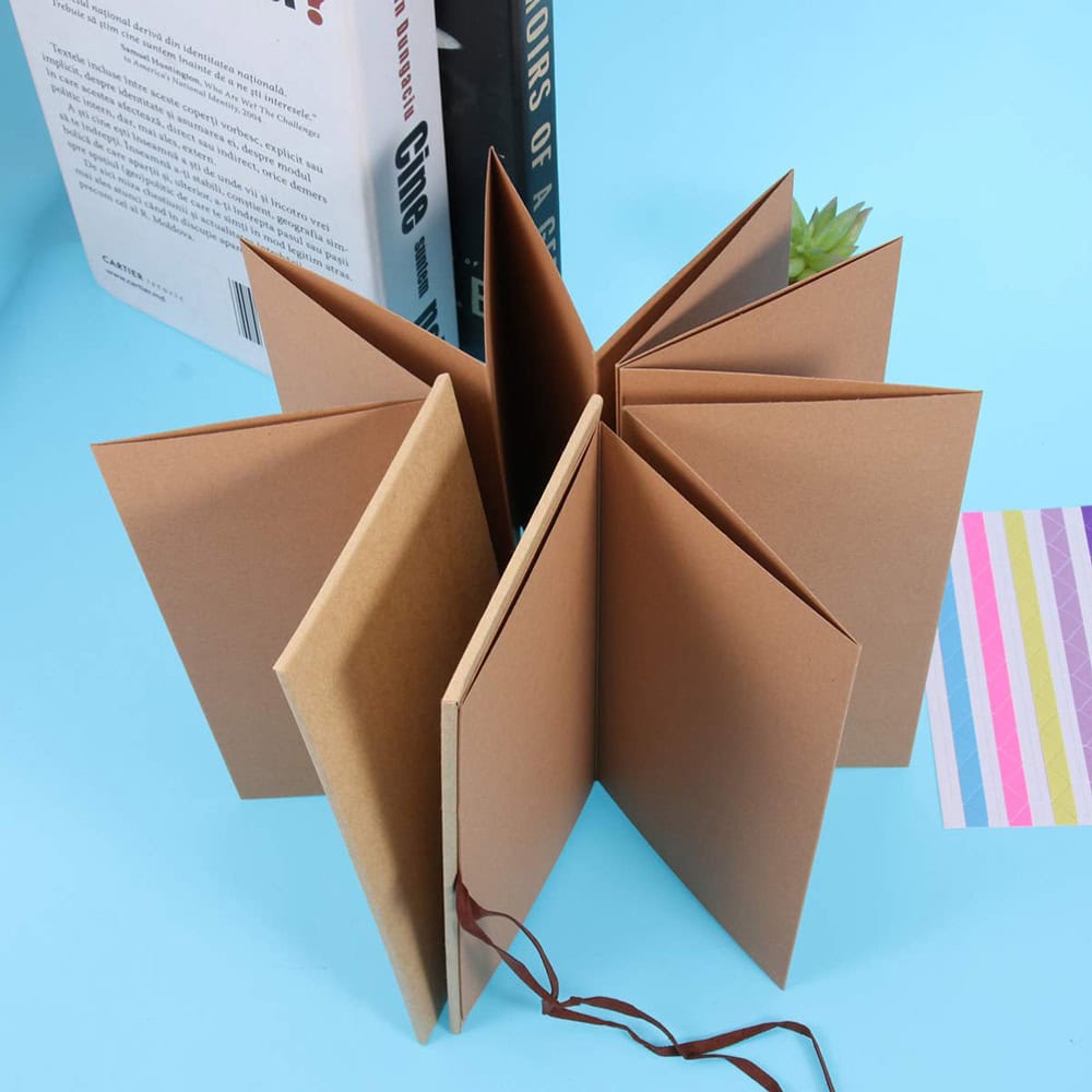 Un album foto elegant, realizat din hârtie kraft premium și șnur din piele. Designul pliabil permite expunerea creativă a fotografiilor, iar stickerele incluse adaugă un plus de personalizare. 📸