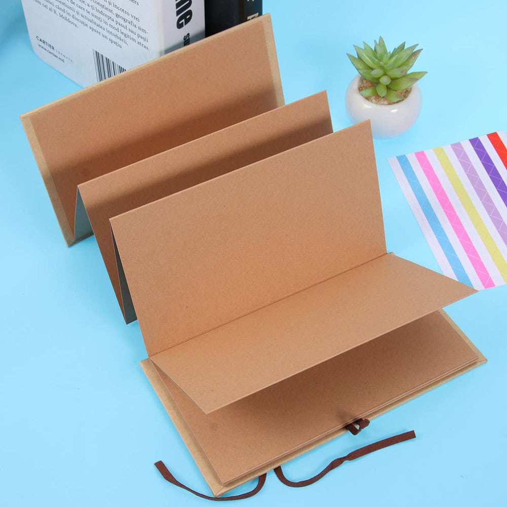 Album foto dreptunghiular pliabil cu șnur din piele - Kraft