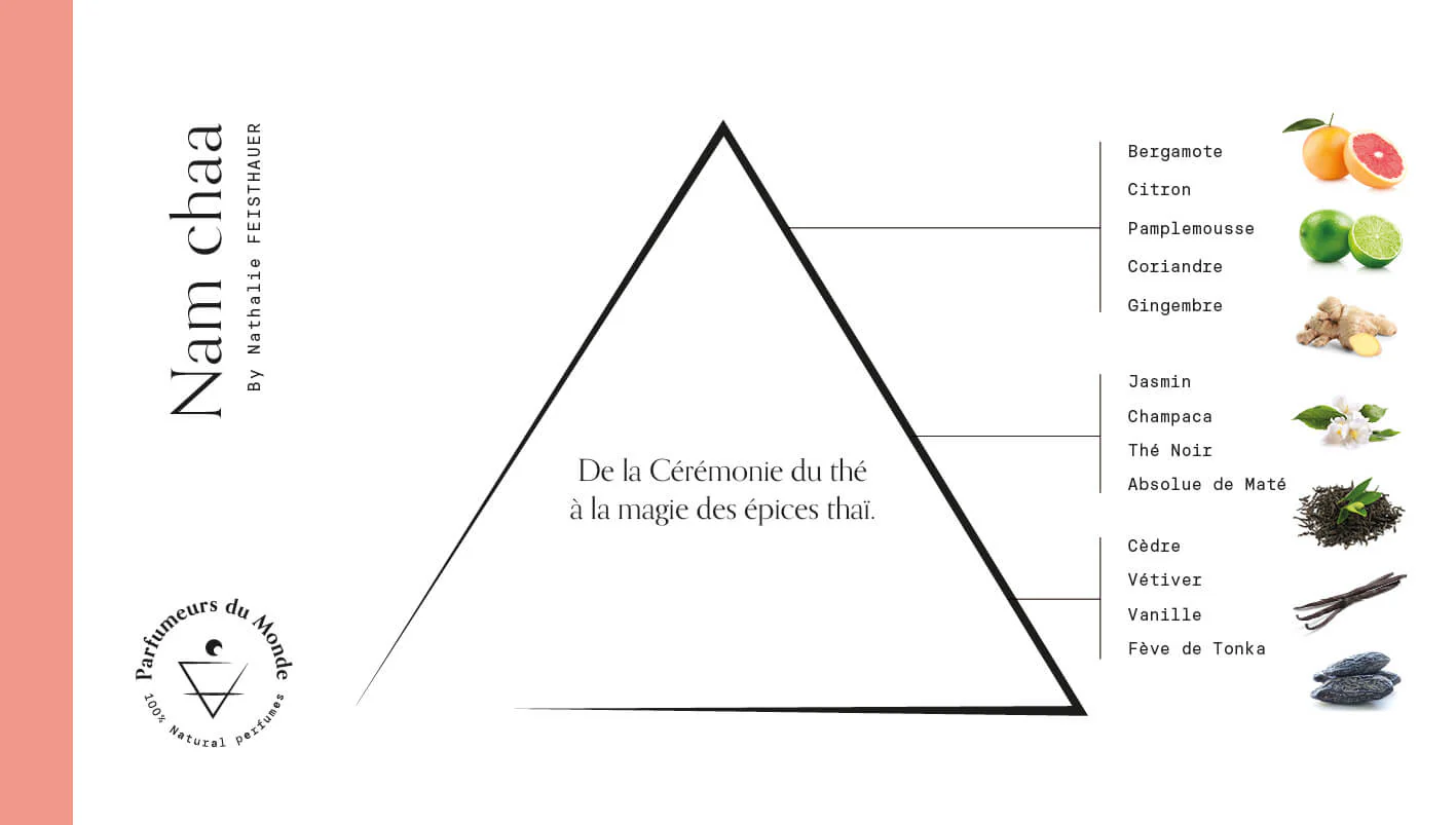 O incursiune olfactivă în inima Asiei, unde ceremonia ceaiului se împletește cu farmecul condimentelor thailandeze. Nam Chaa este un parfum floral-condimentat, vibrant și senin, ce captează eleganța unui peisaj exotic și liniștea ritualurilor ancestrale.