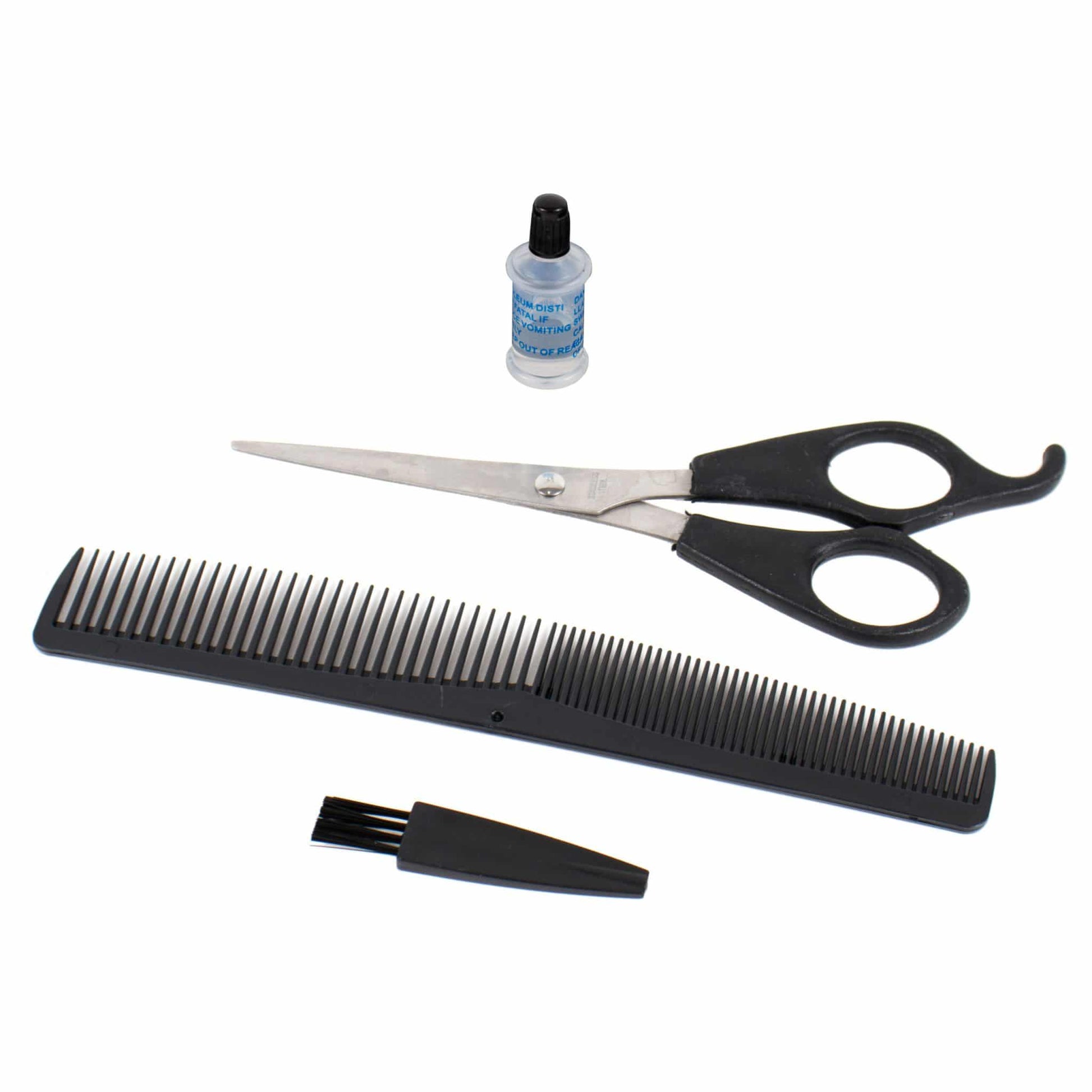 4 accesorii pentru lungimi de taiere intre 3 - 12 mm, pieptene, foarfeca, sticluta cu ulei lubrifiant, periuta de curatare si protectie pentru capul de taiere;