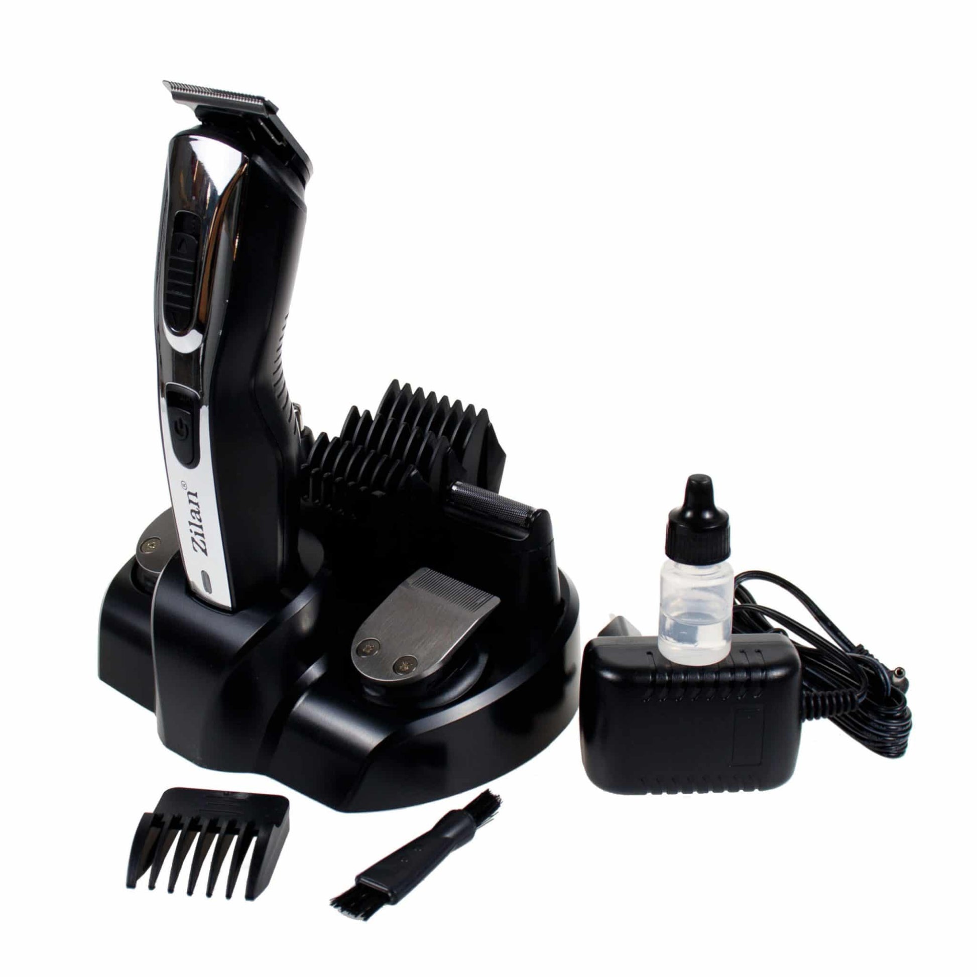 Aparatul contine:5 capete interschimbabile,5 piepteni cu diferite lungimi (1,5, 3, 6, 9 si 12mm), incarcator 3V, timp incarcare 8 ore pentru 45 minute functionare, suport incarcare si suport pentru accesorii, ulei lubrifiere, perie pentru curatat.