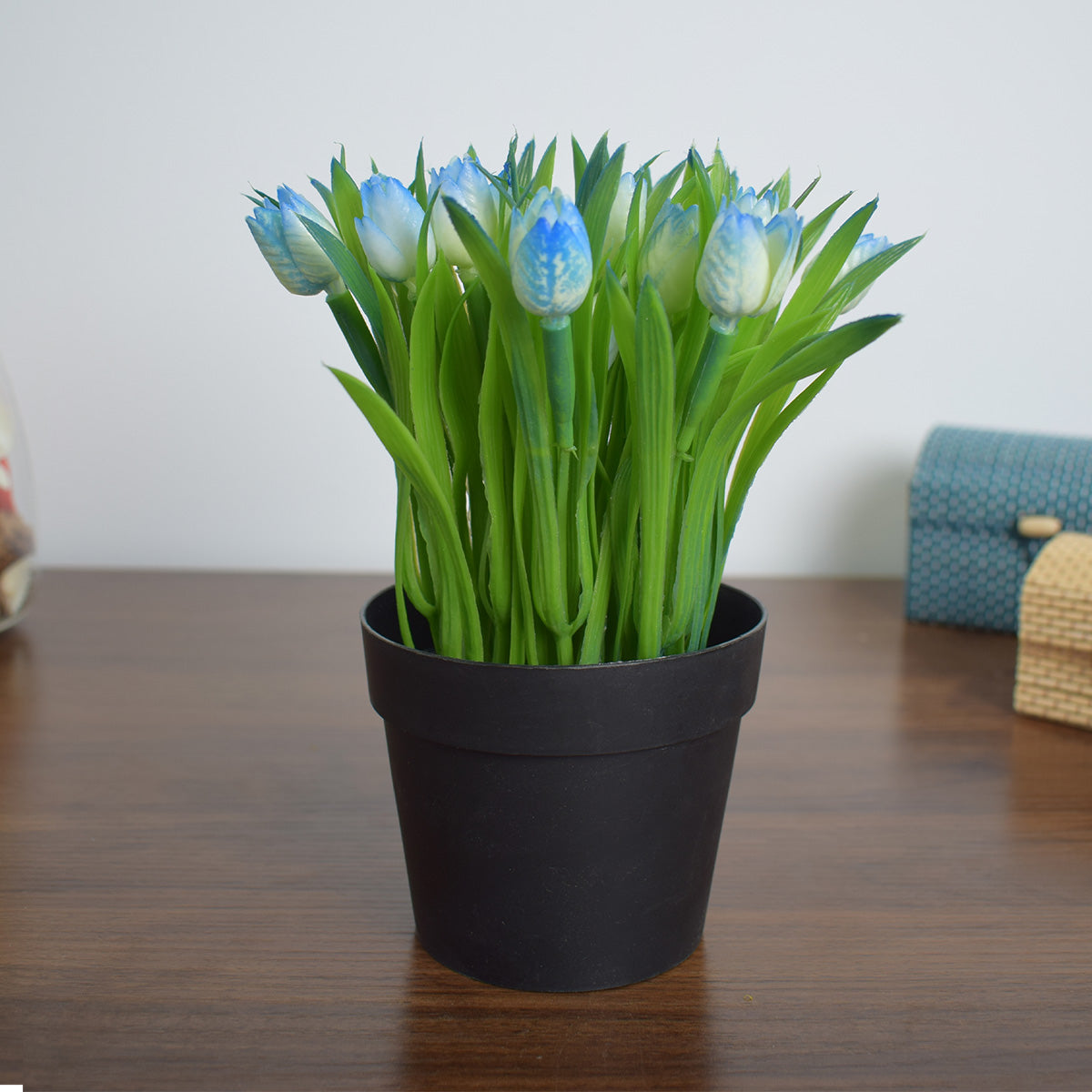 Aranjament floral artificial, in ghiveci, Naimeed D4953, Albastru