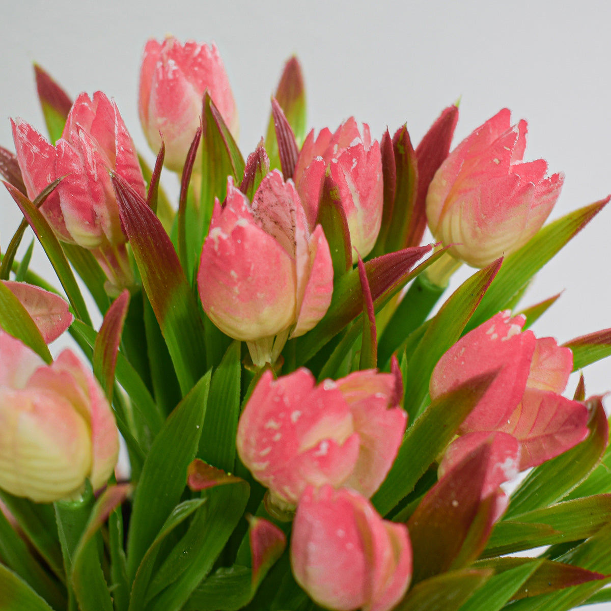 Cu o inaltime de 19 centimetri, acest aranjament floral impresioneaza prin detaliile sale realiste si aspectul sau plin de viata.