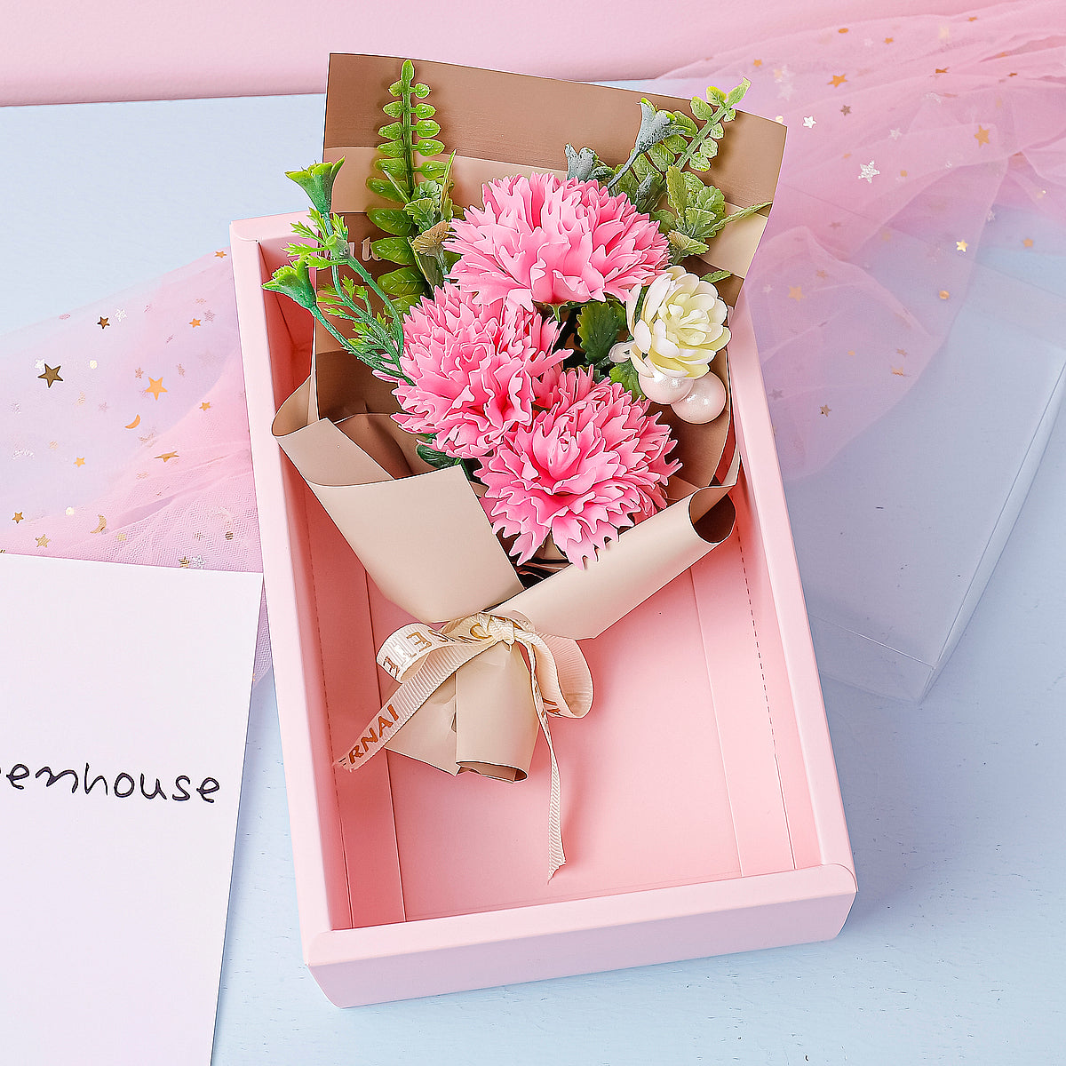Aranjament floral elegant, flori de sapun, D4057, Roz
