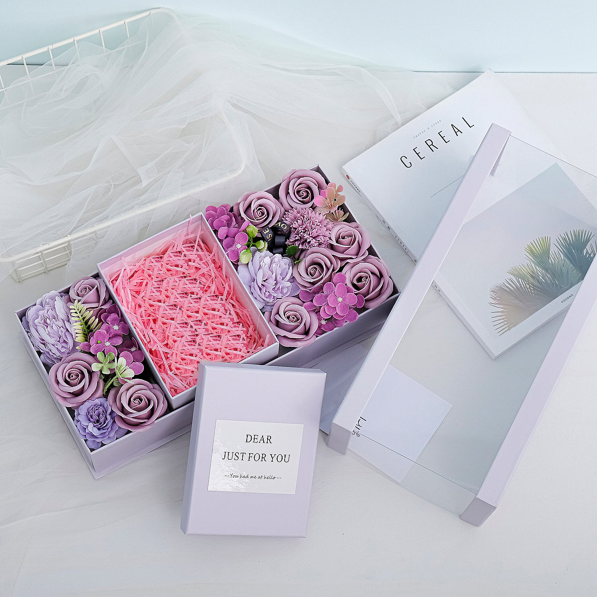 Aranjament floral elegant, flori de sapun, D4058, Mov