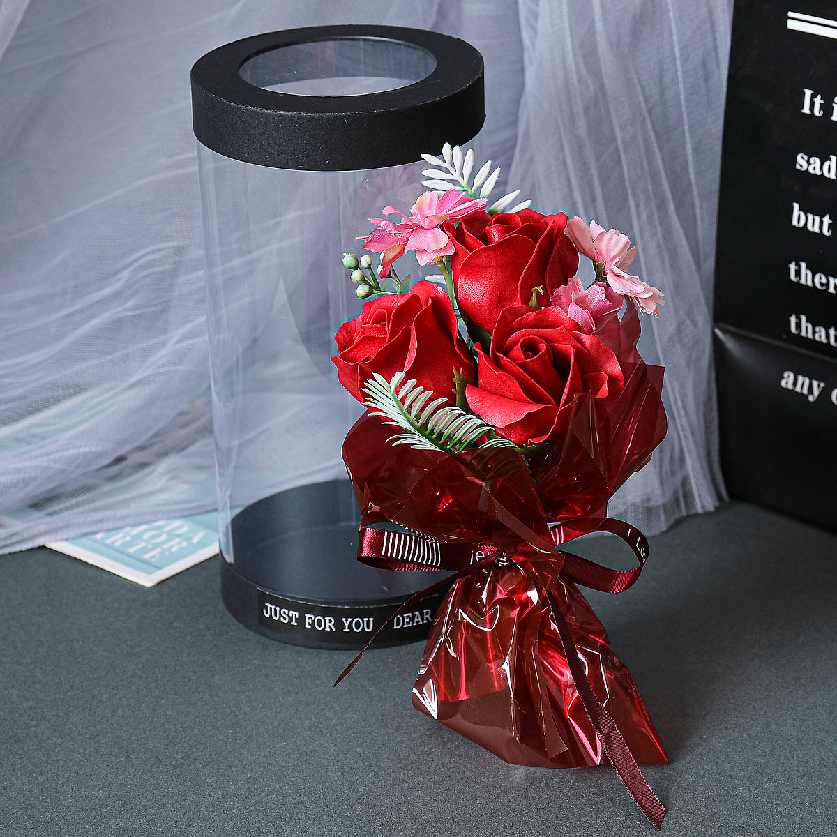 Aranjament floral elegant, flori de sapun, D4059, Rosu
