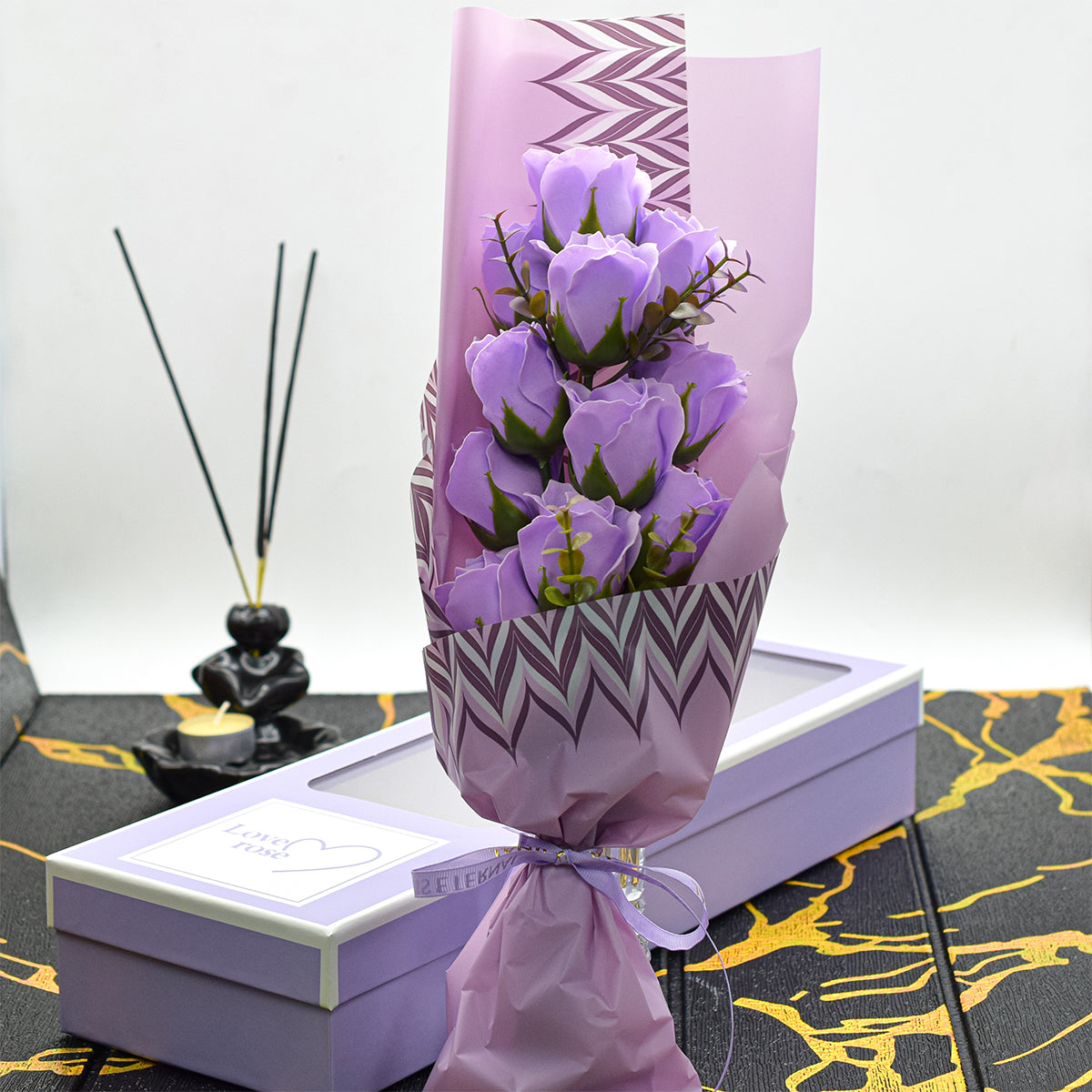 Aranjament floral elegant, flori de sapun, D4062, Mov