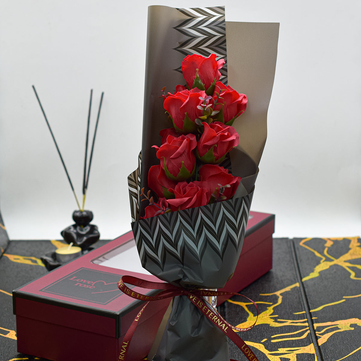 Aranjament floral elegant, flori de sapun, D4062, Rosu