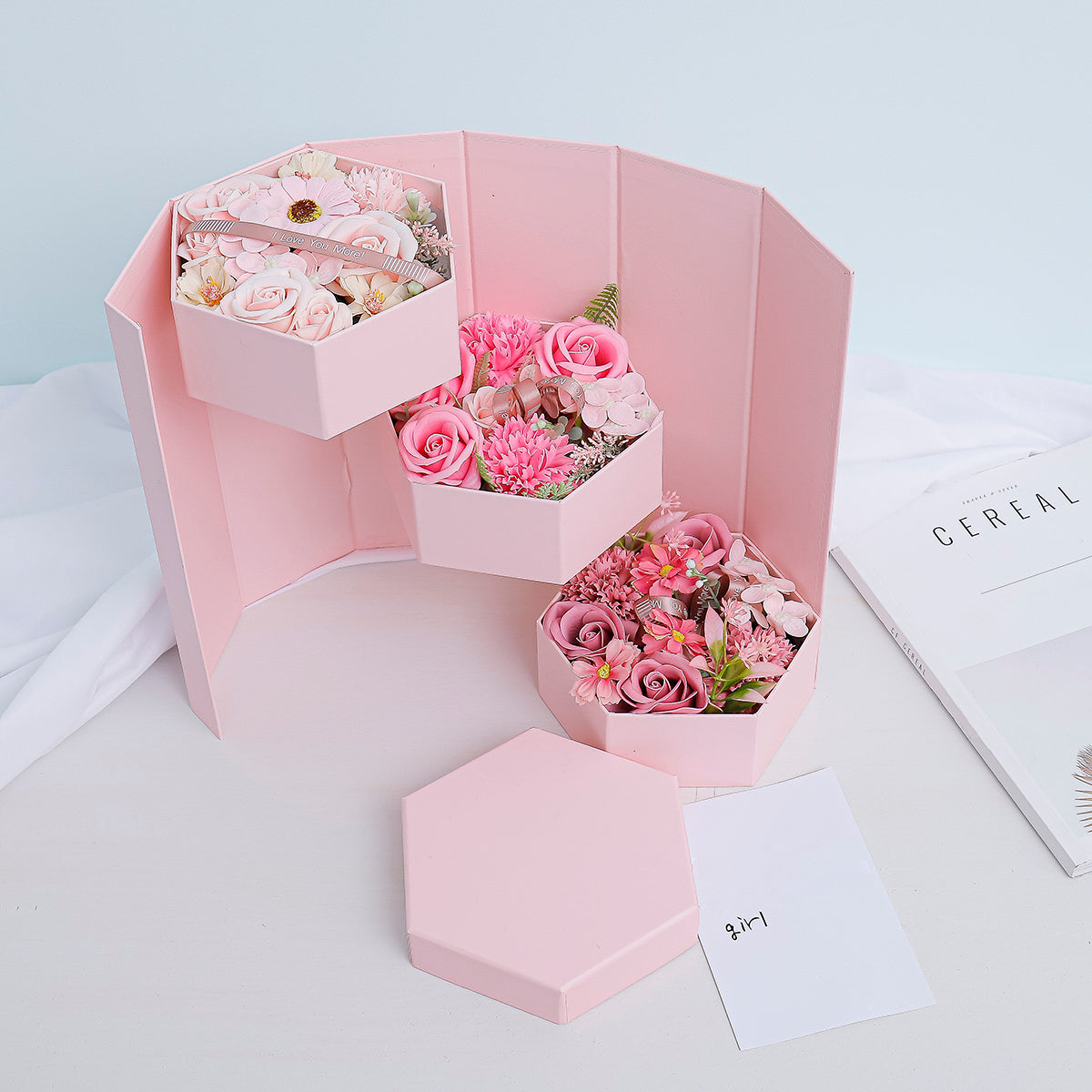 Aranjament floral elegant, flori de sapun, D4067, Roz