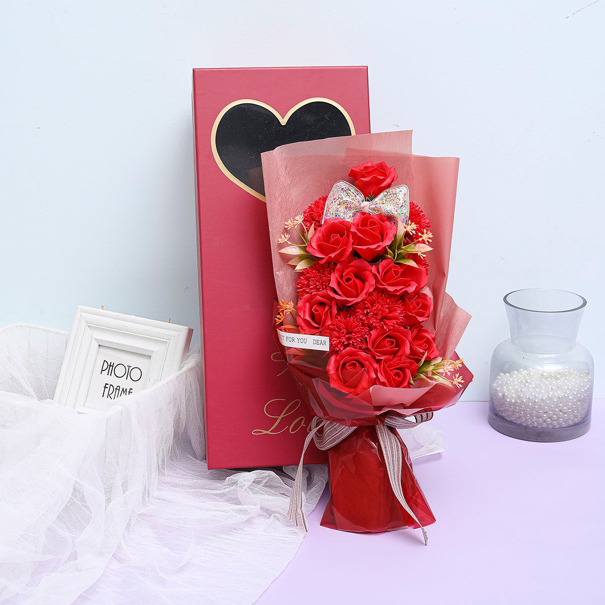 Aranjament floral elegant, flori de sapun, D4068, Rosu