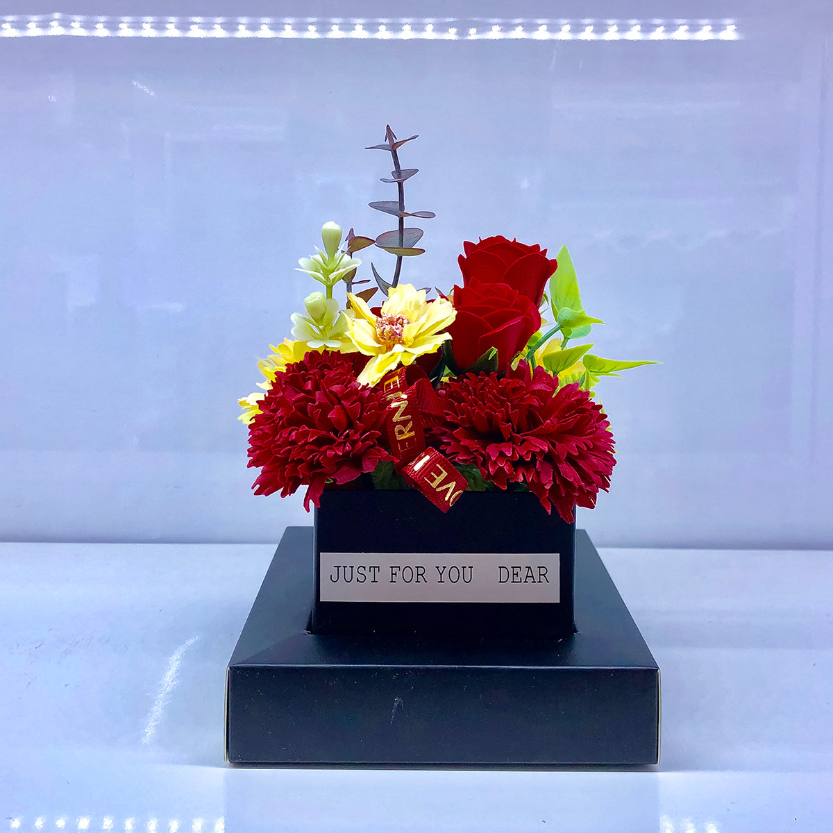 Aranjament floral elegant, flori de sapun, D4069, Rosu