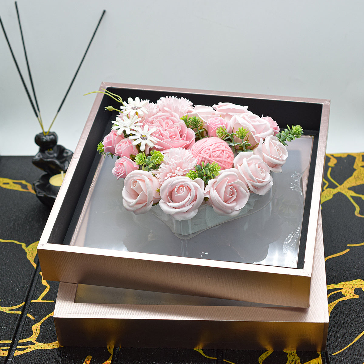 Aranjament floral elegant, flori de sapun, D4076, Roz