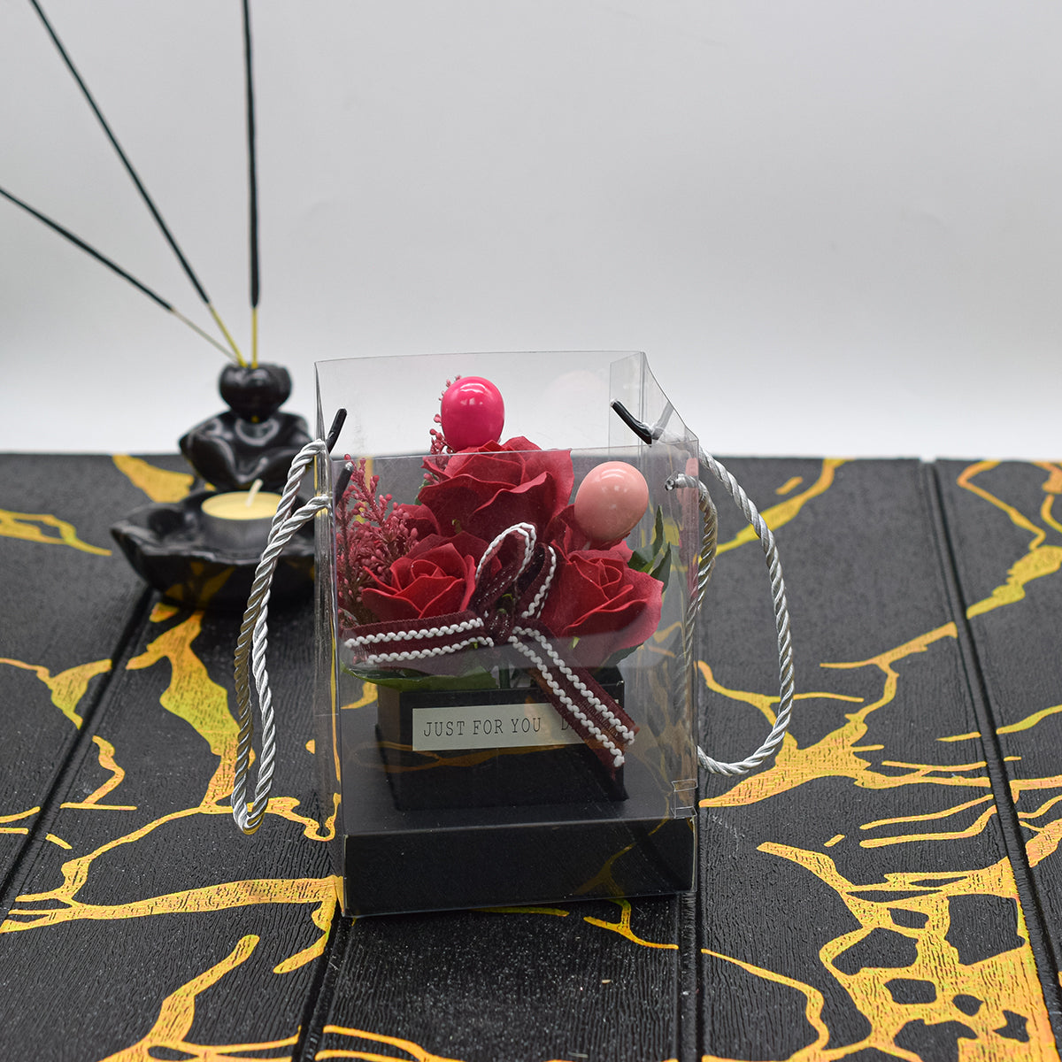Aranjament floral elegant, flori de sapun, D4077, Rosu