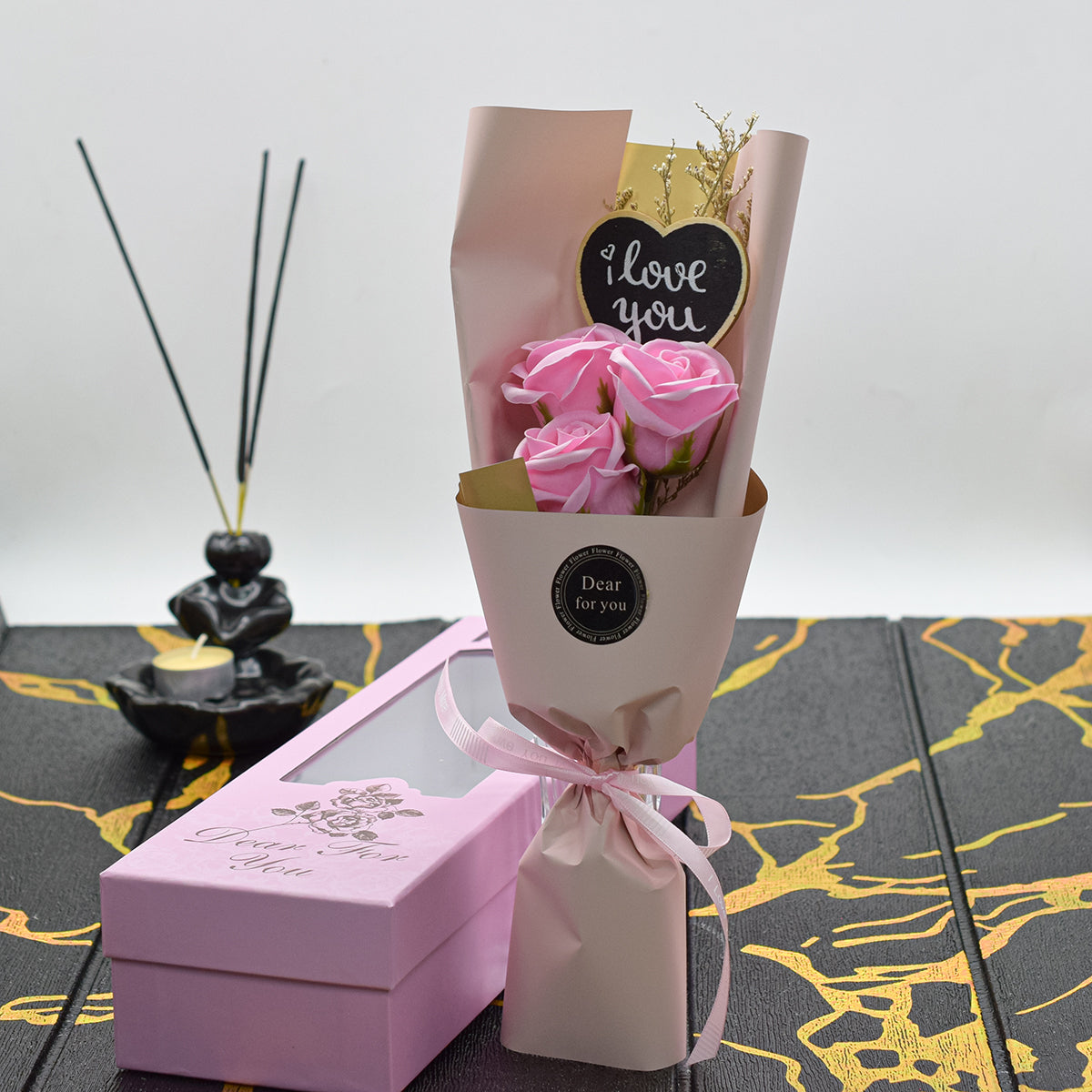 Aranjament floral elegant, flori de sapun, D4083, Roz
