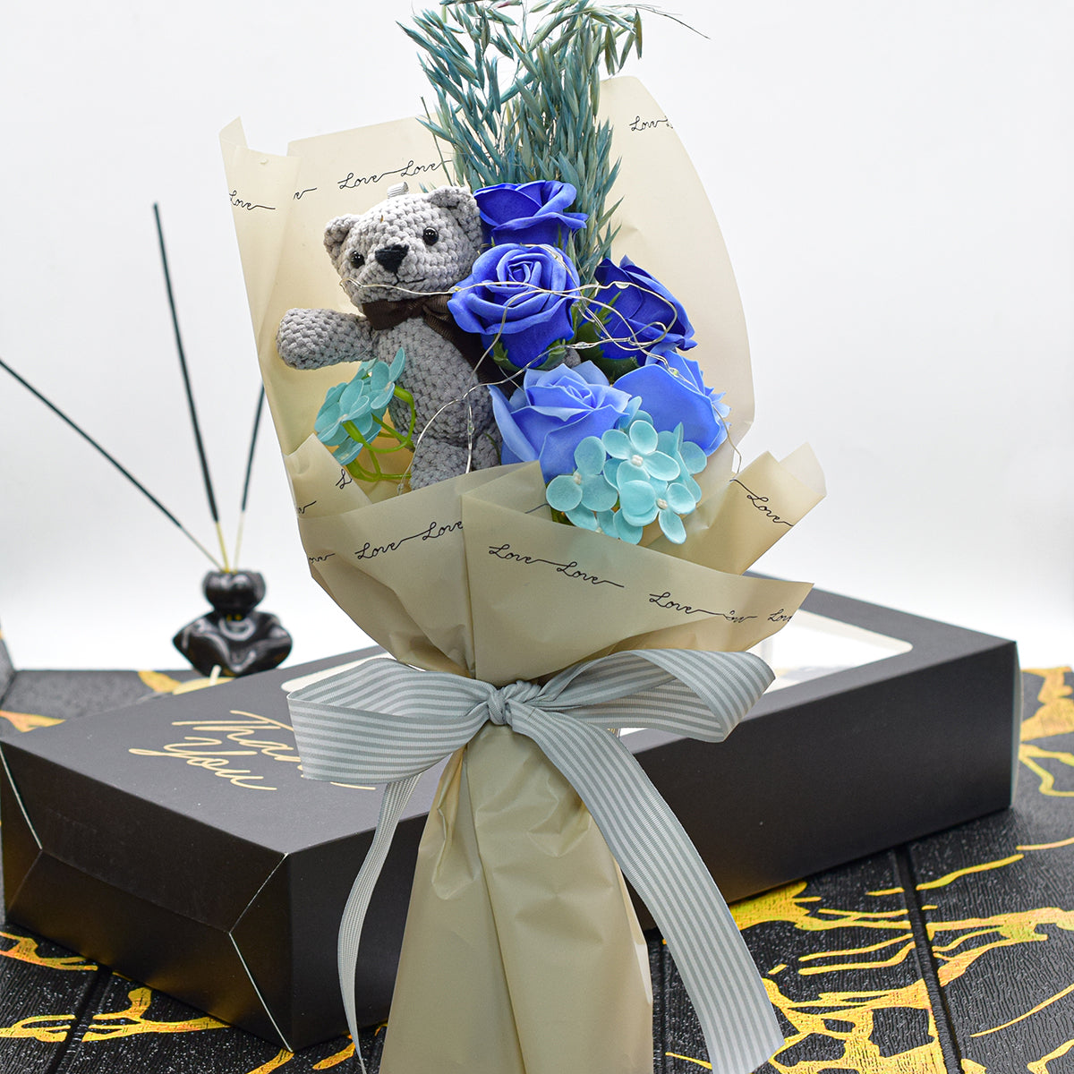 Aranjament floral elegant, flori de sapun, D4084, Blue