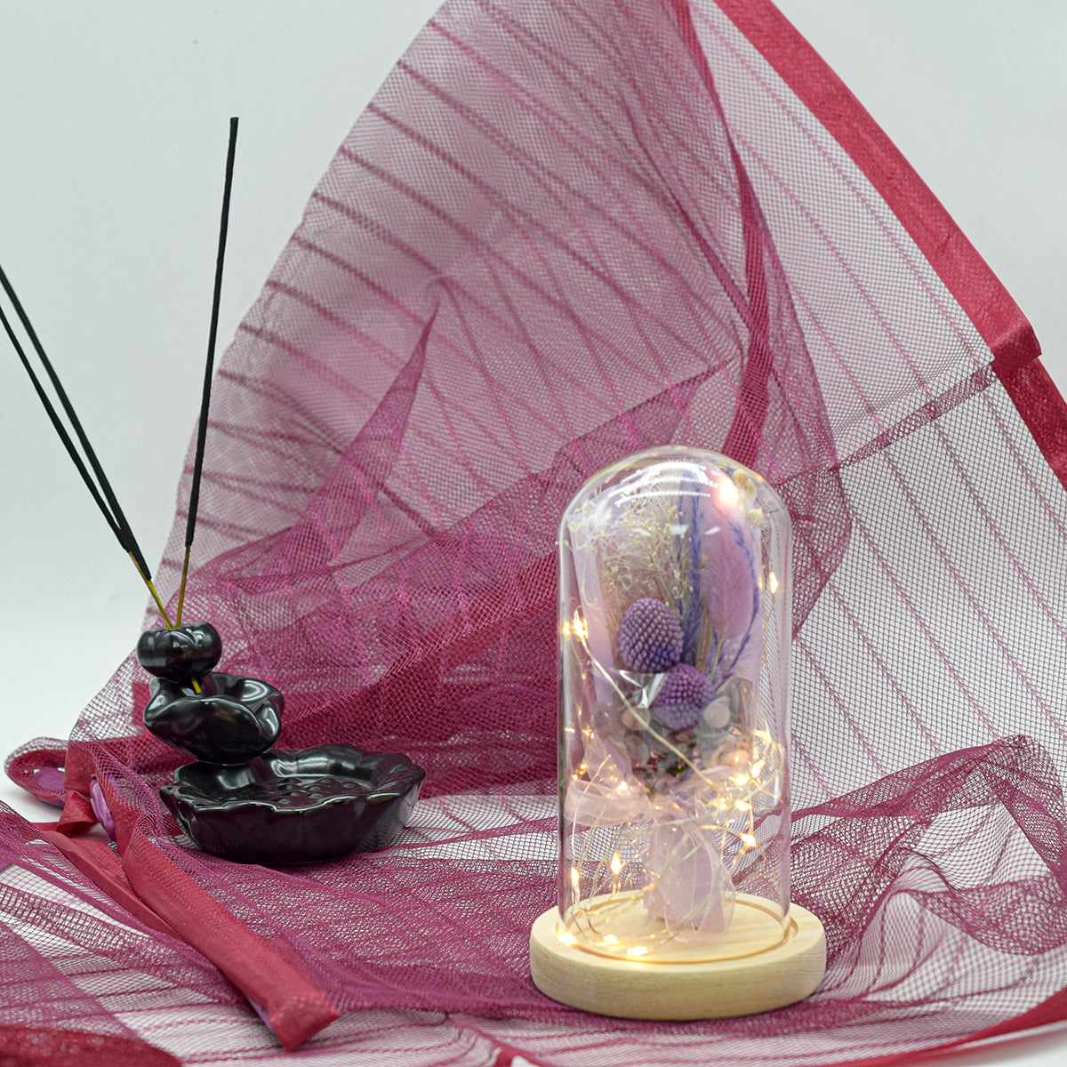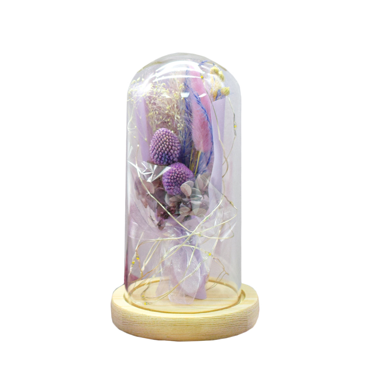 Aranjament floral in cupola de sticla, lumina Led, D4000, Mov