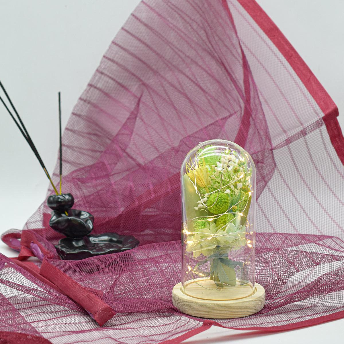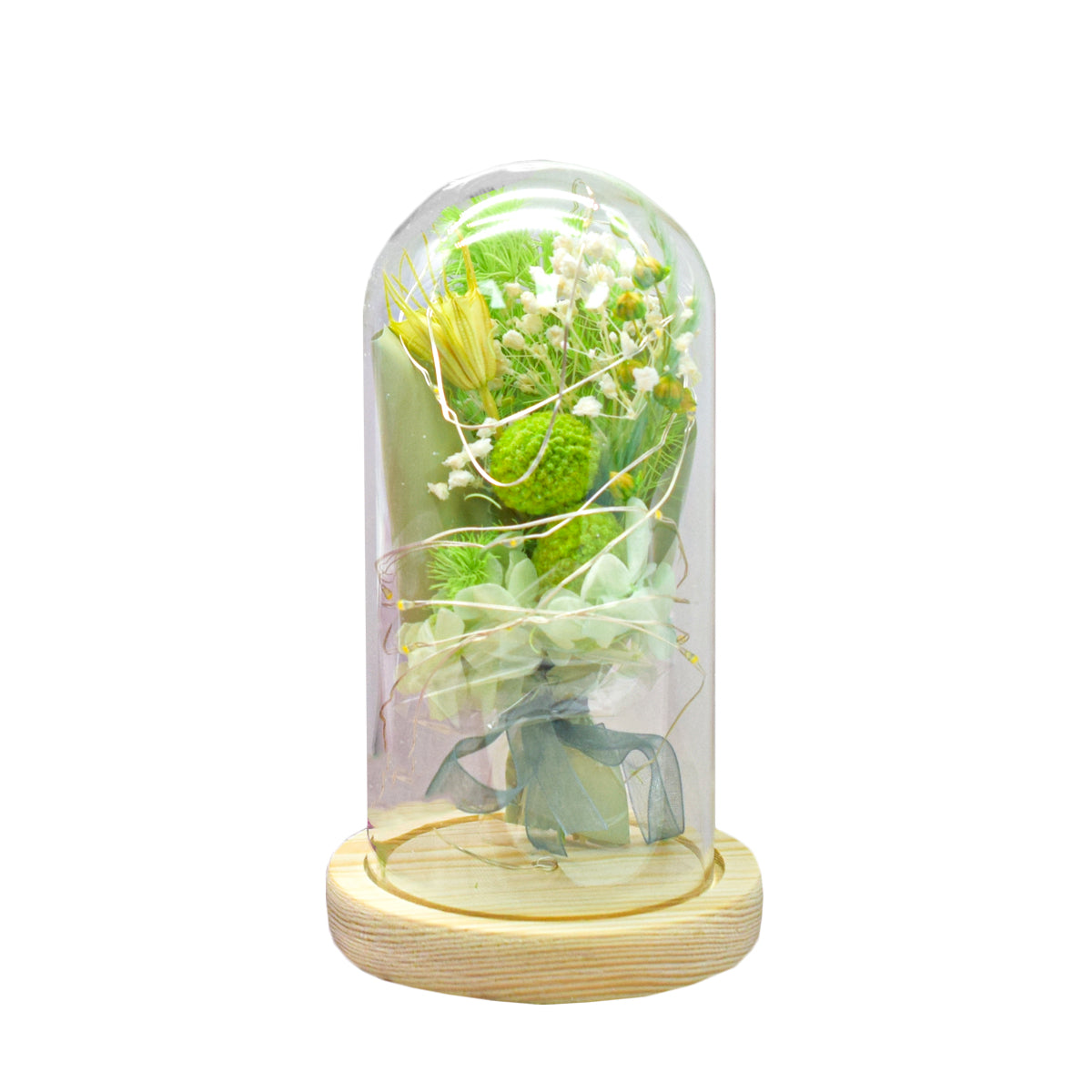 Aranjament floral in cupola de sticla, lumina Led, D4000, Verde