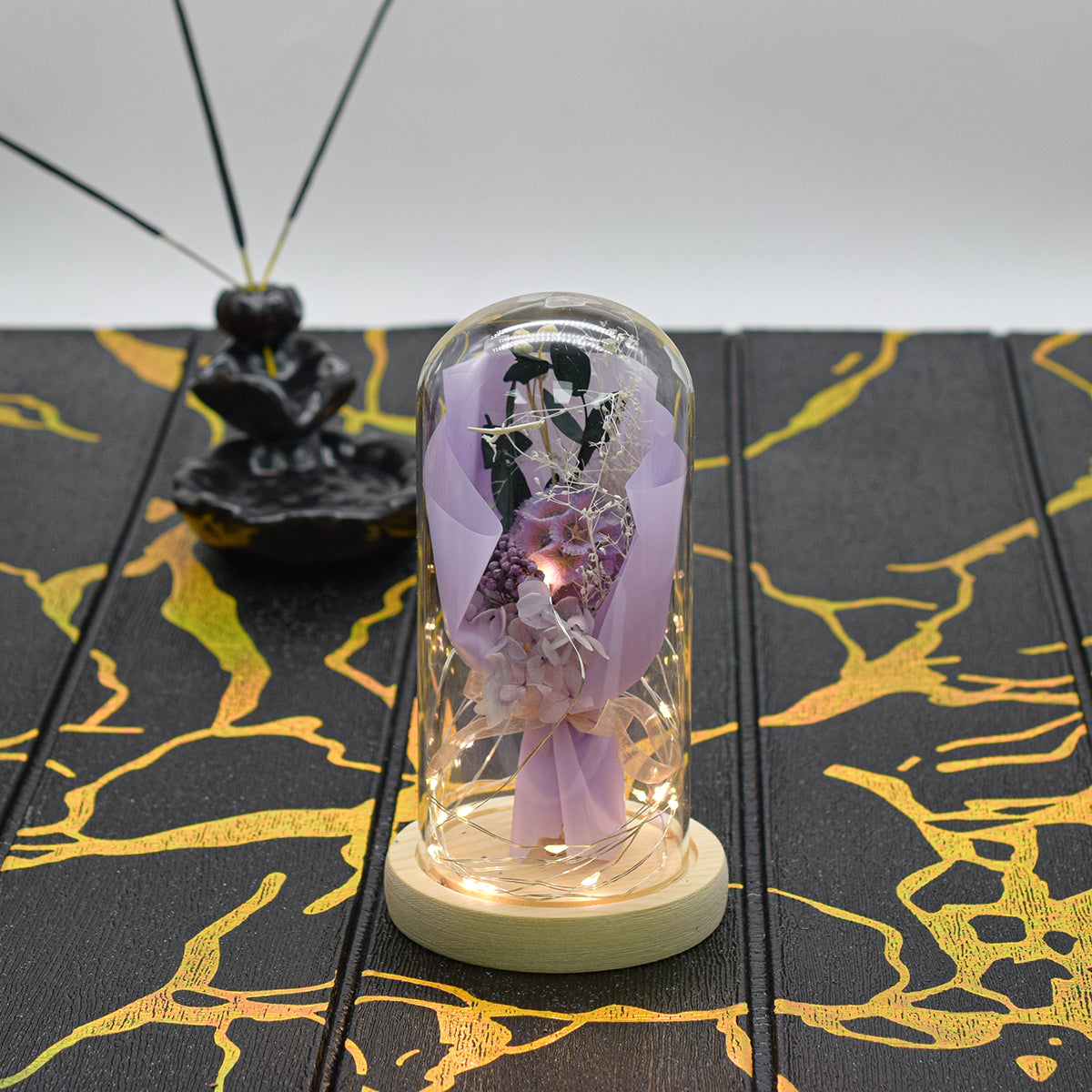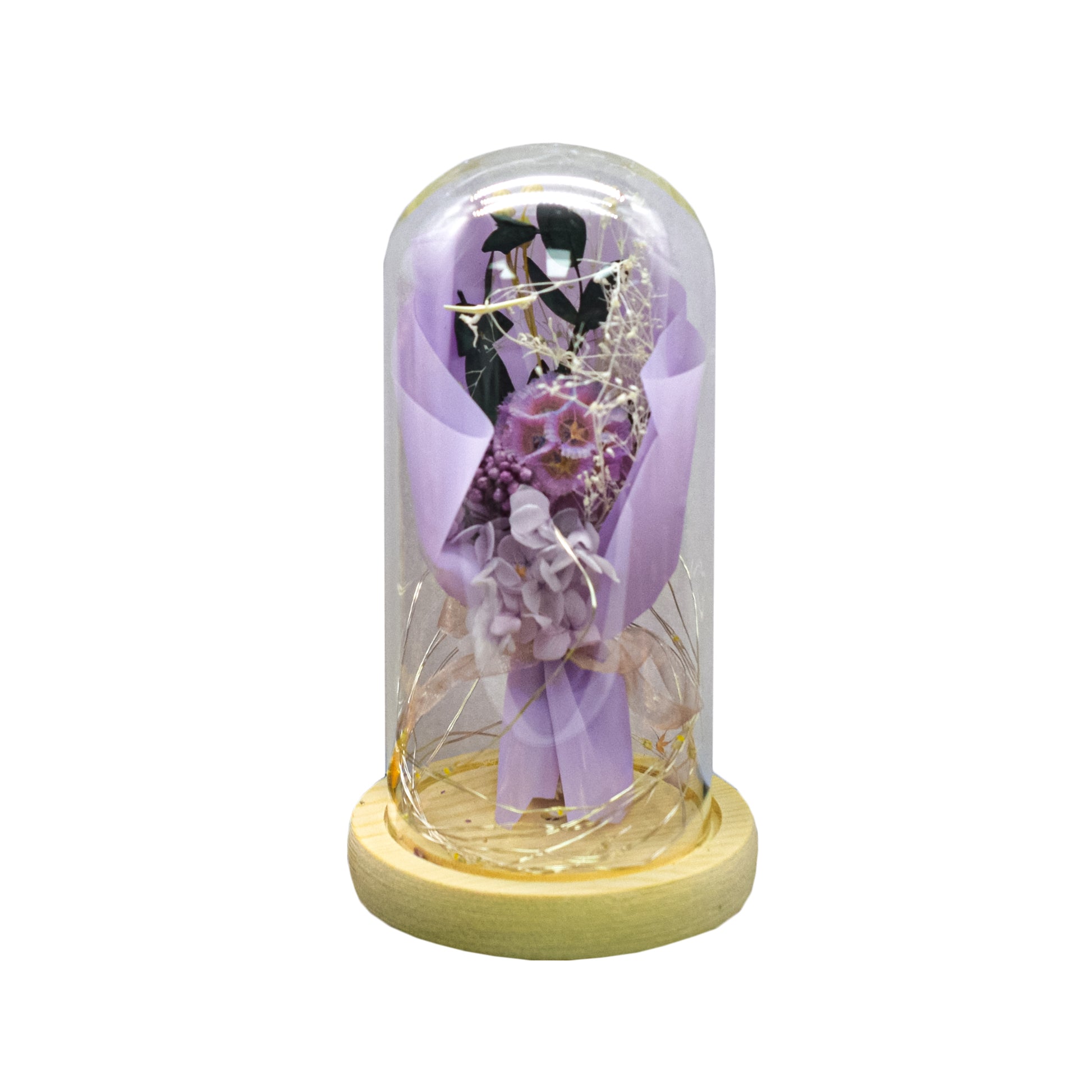 Aranjament floral in cupola de sticla, lumina Led, D4001, Mov