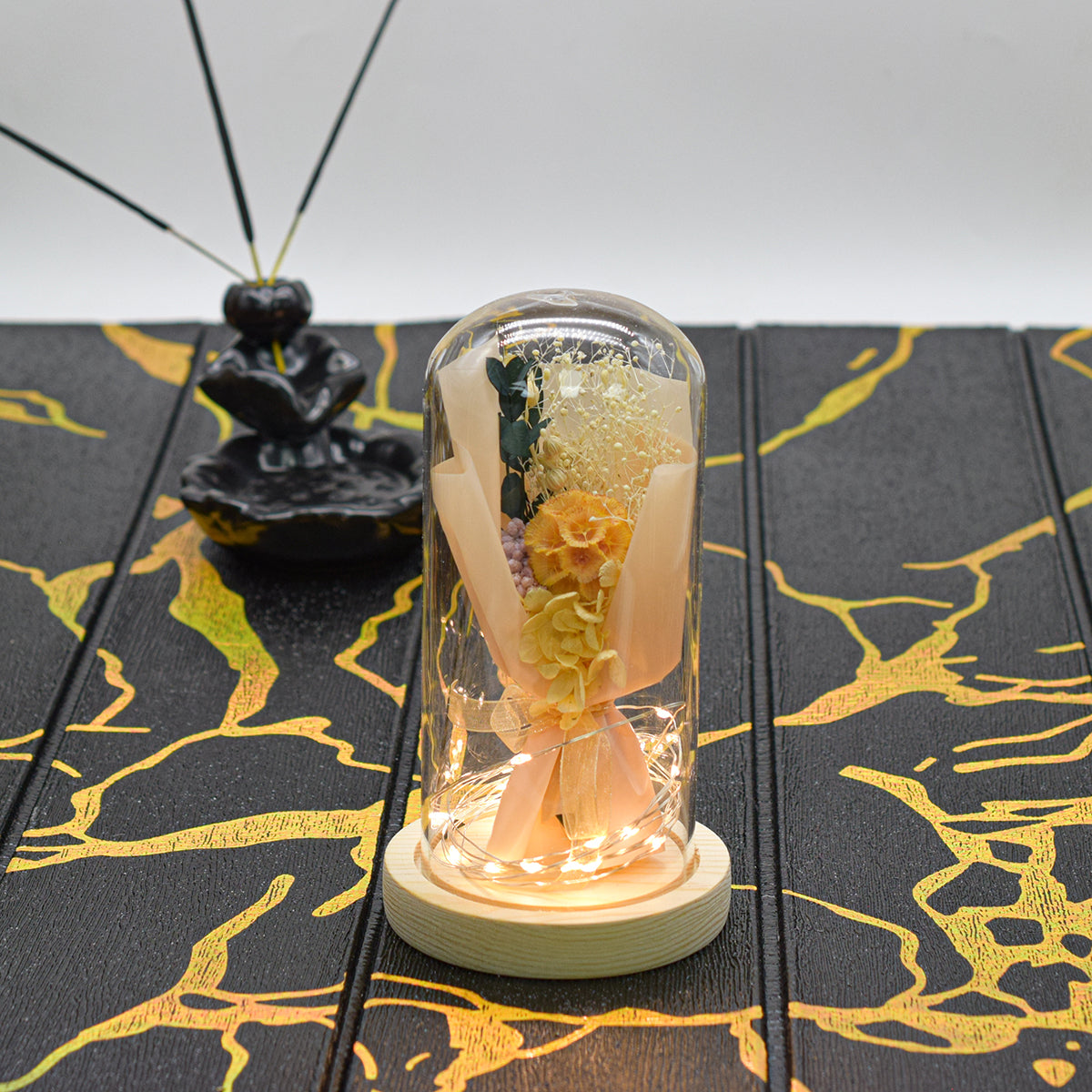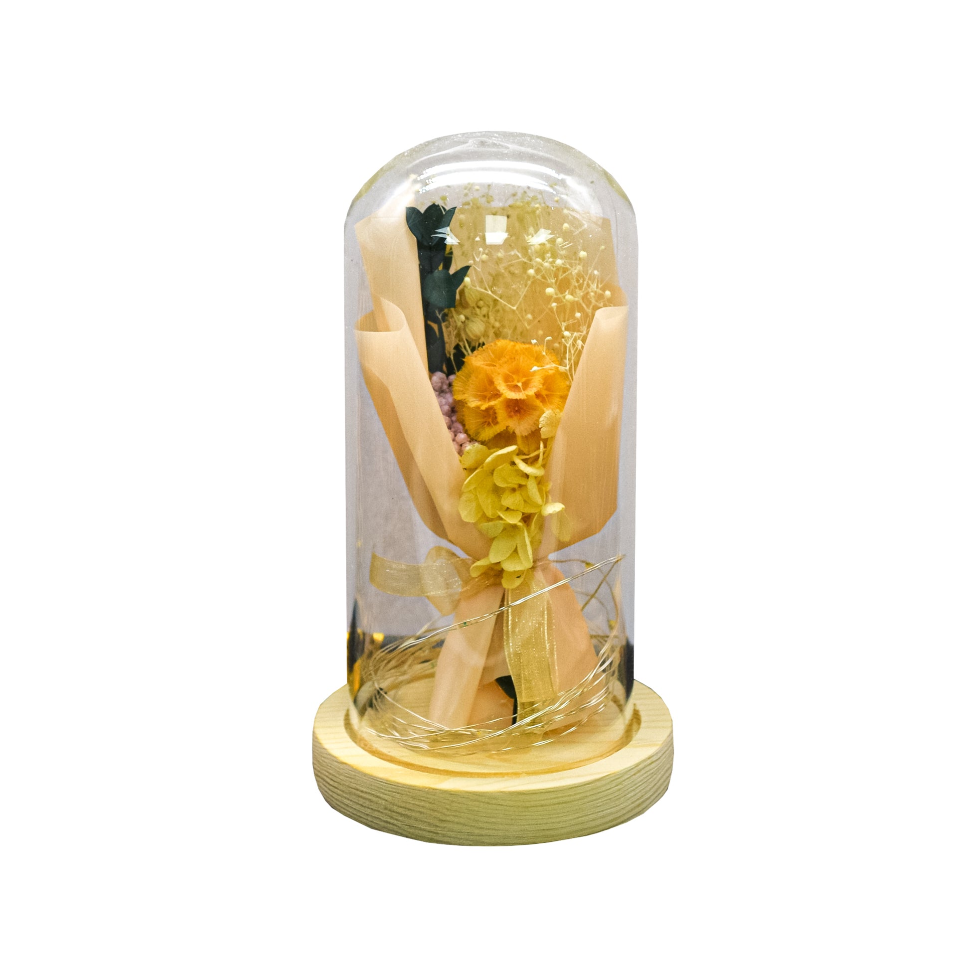 Aranjament floral in cupola de sticla, lumina Led, D4001, Portocaliu