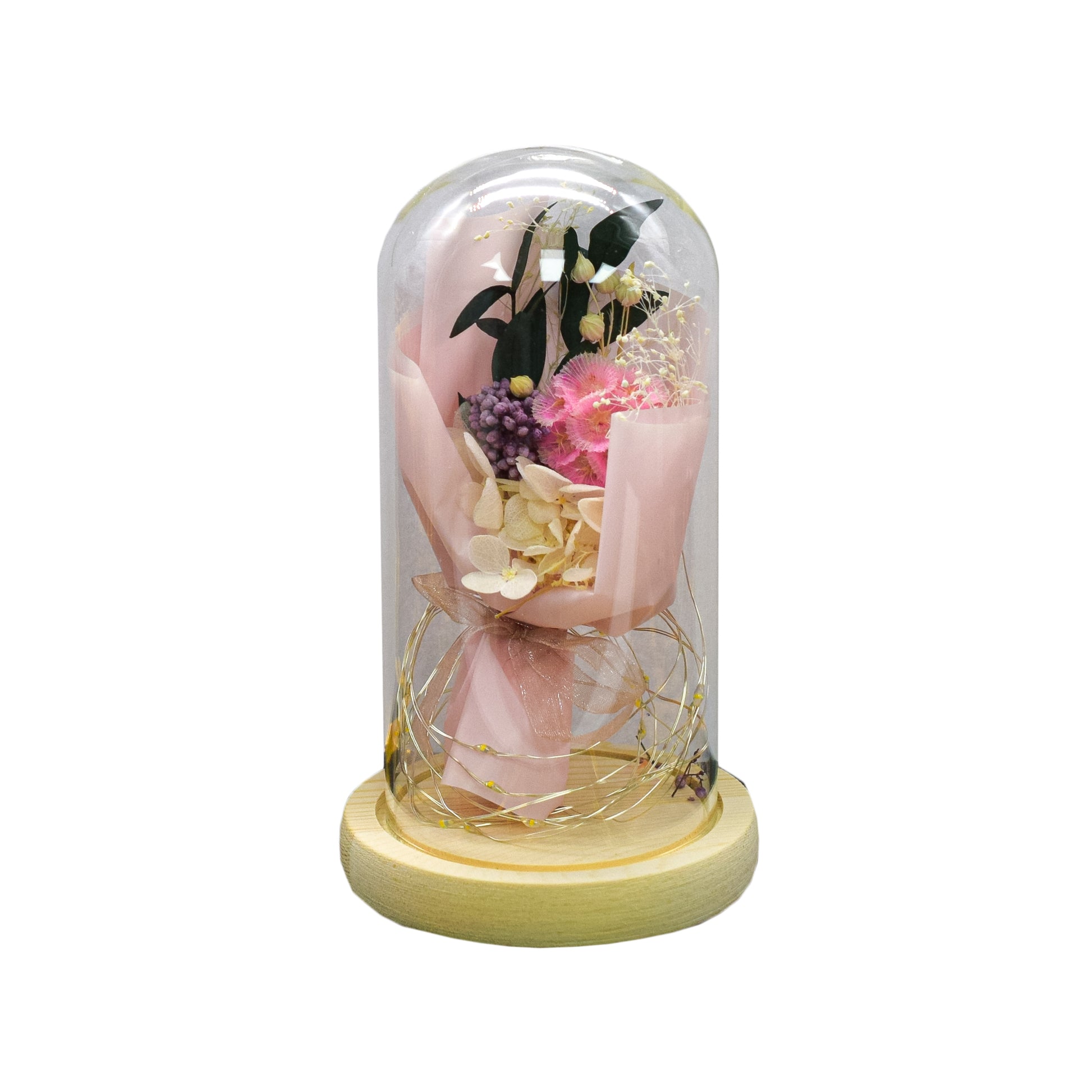 Aranjament floral in cupola de sticla, lumina Led, D4001, Roz