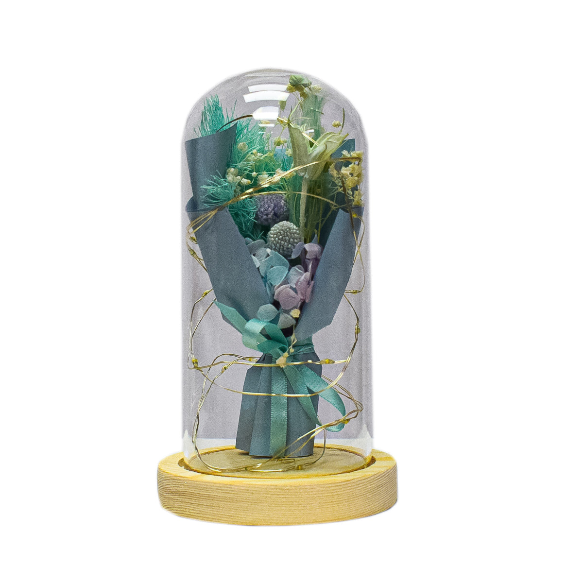 Aranjament floral in cupola de sticla, lumina Led, D4002, Blue