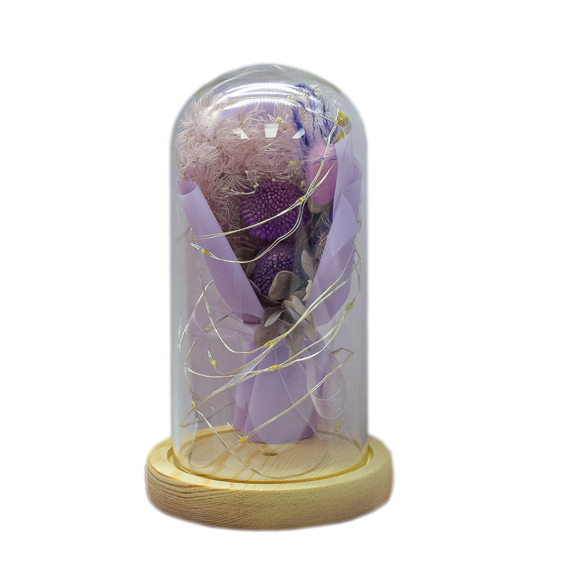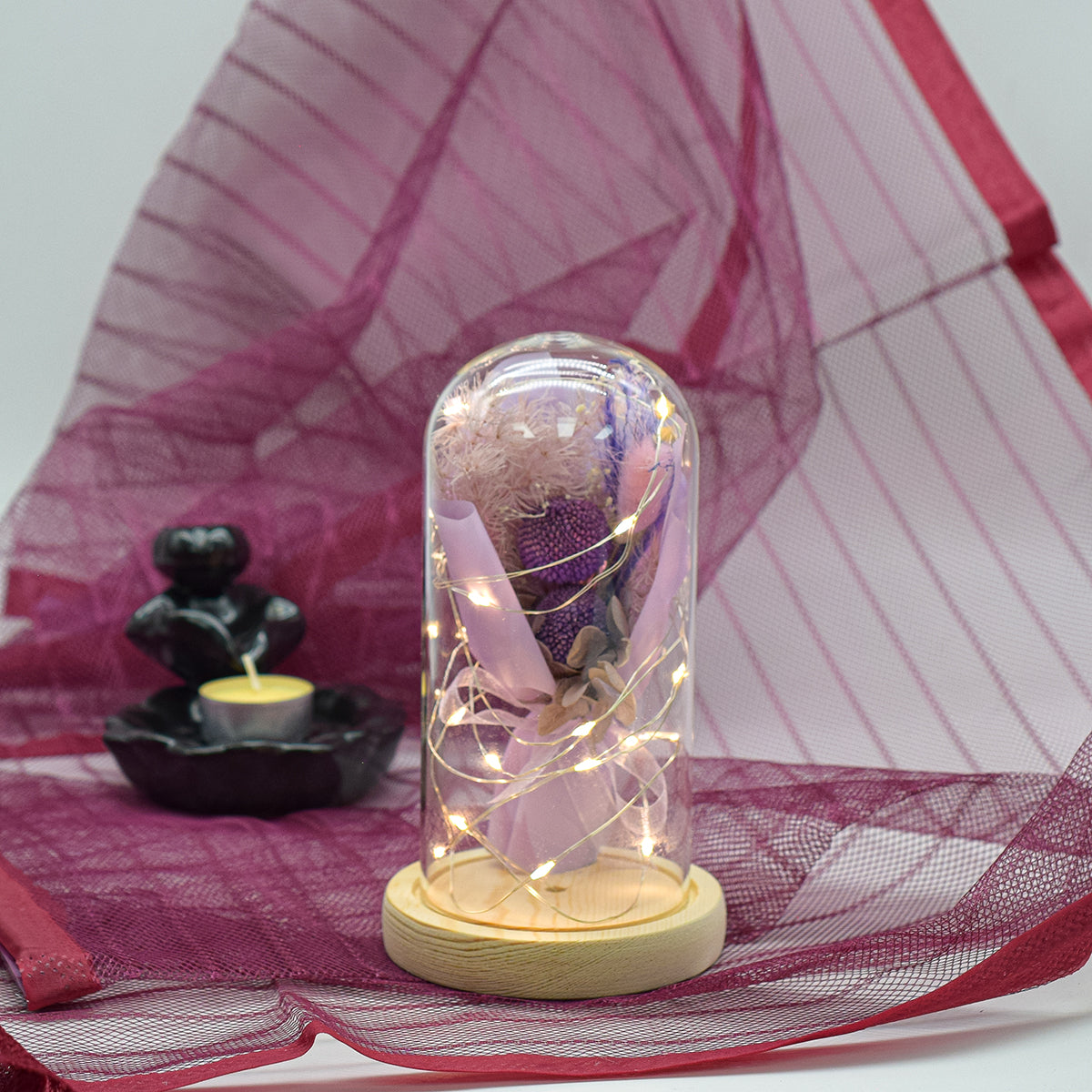 Aranjament floral in cupola de sticla, lumina Led, D4002, Mov