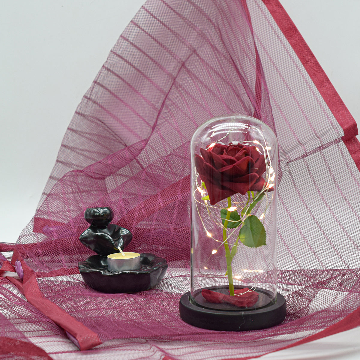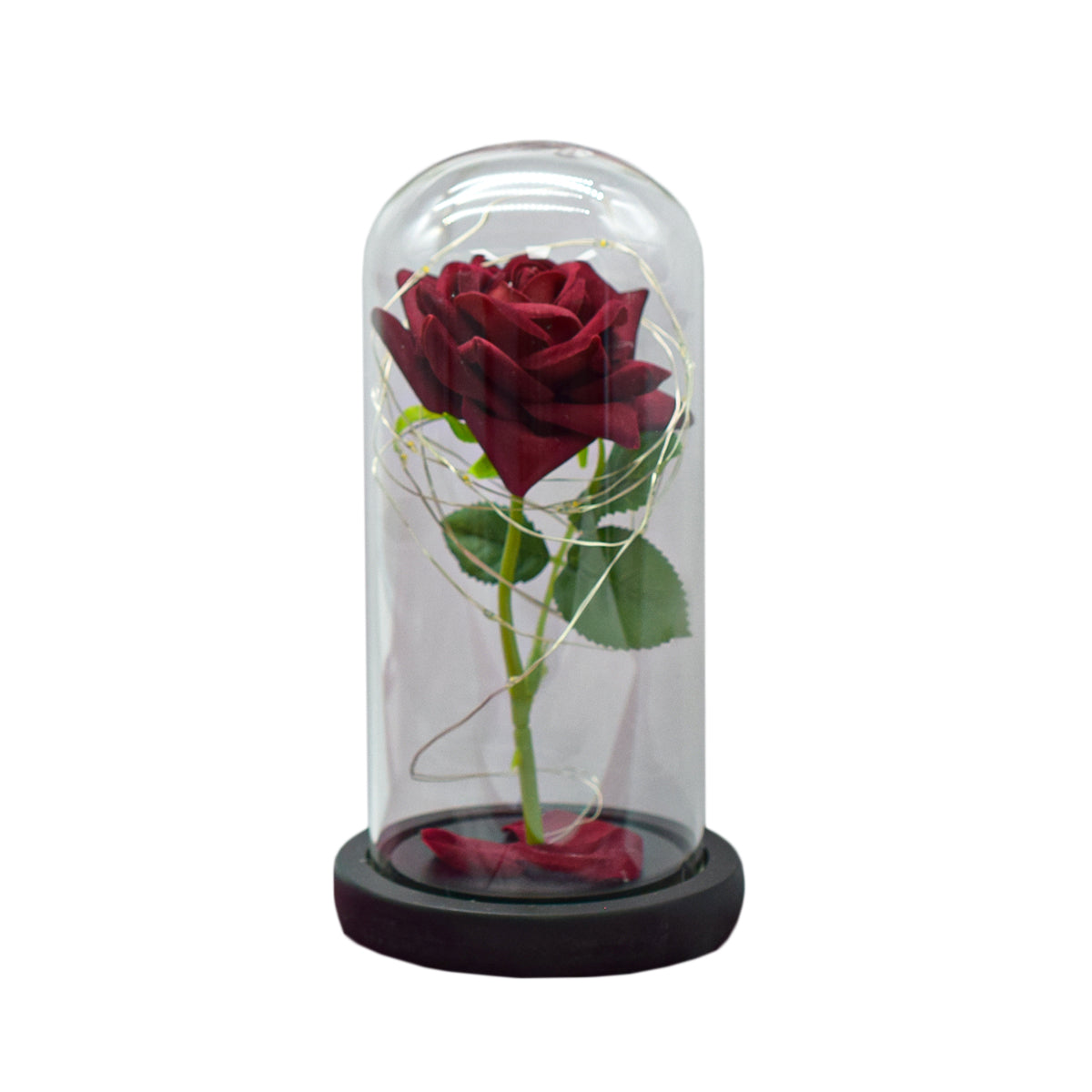 Aranjament floral in cupola de sticla, lumina Led, D4006, Rosu