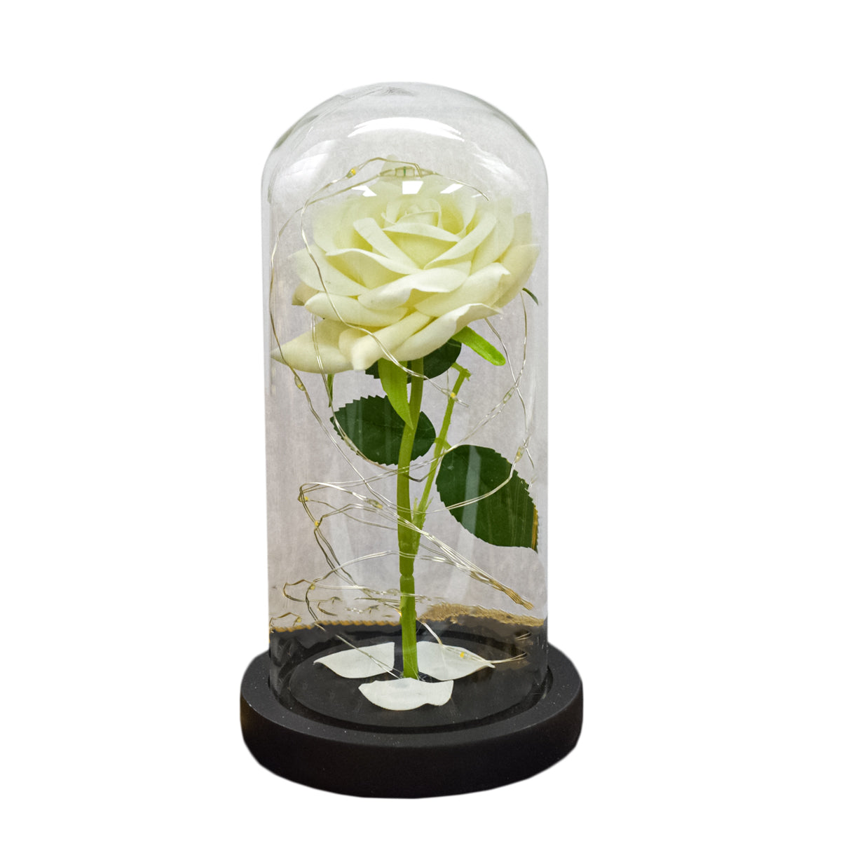 Aranjament floral in cupola de sticla, lumina Led, D4007, Alb