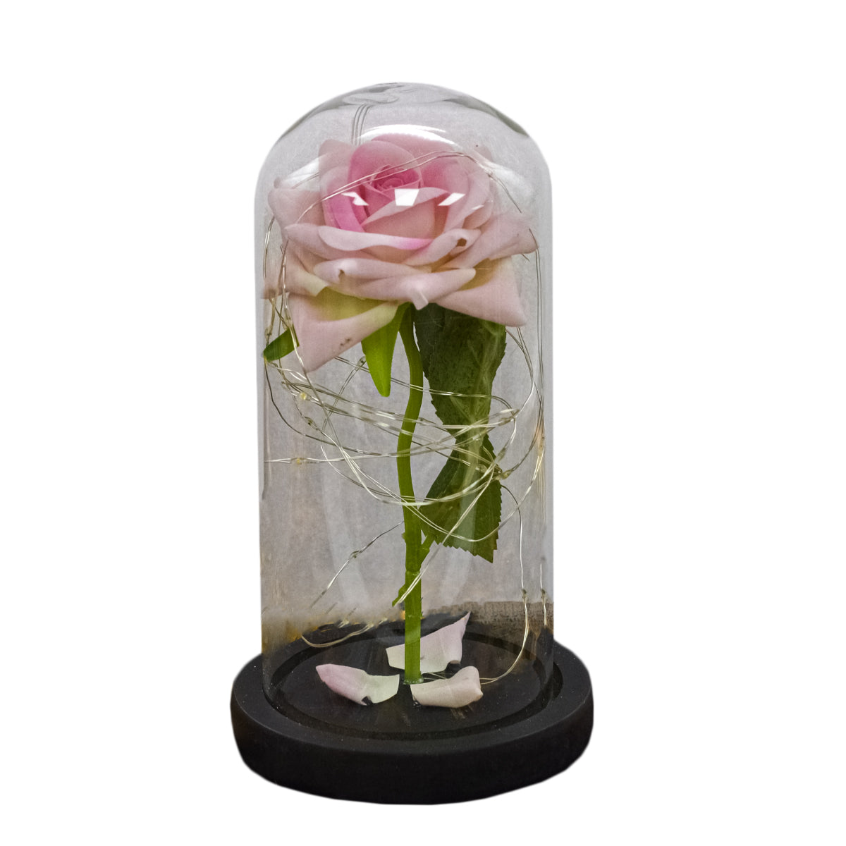 Aranjament floral in cupola de sticla, lumina Led, D4007, Roz pal