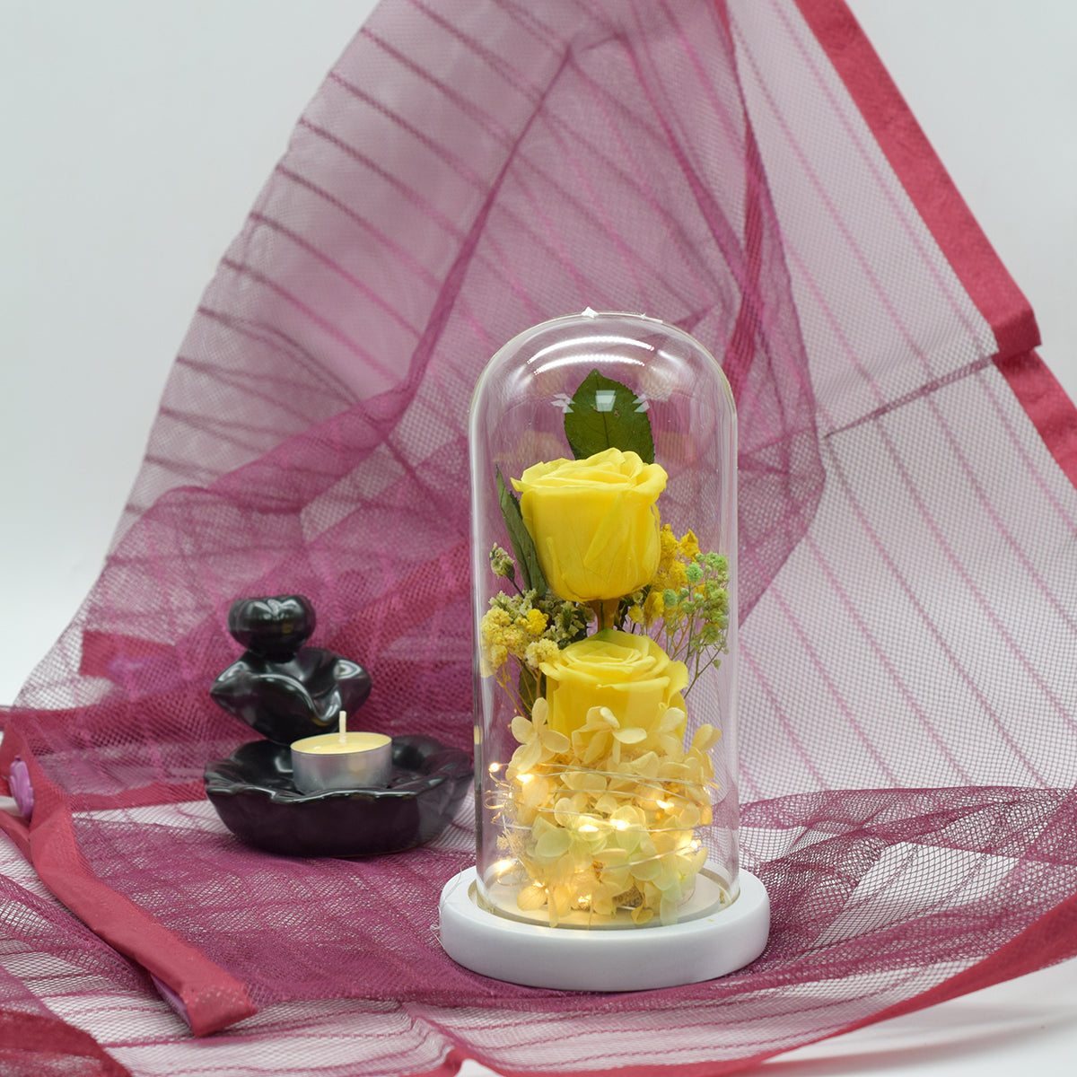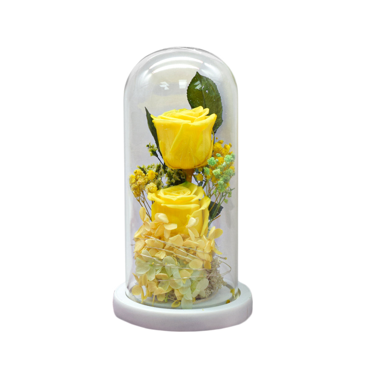 Aranjament floral in cupola de sticla, lumina Led, D4008, Galben