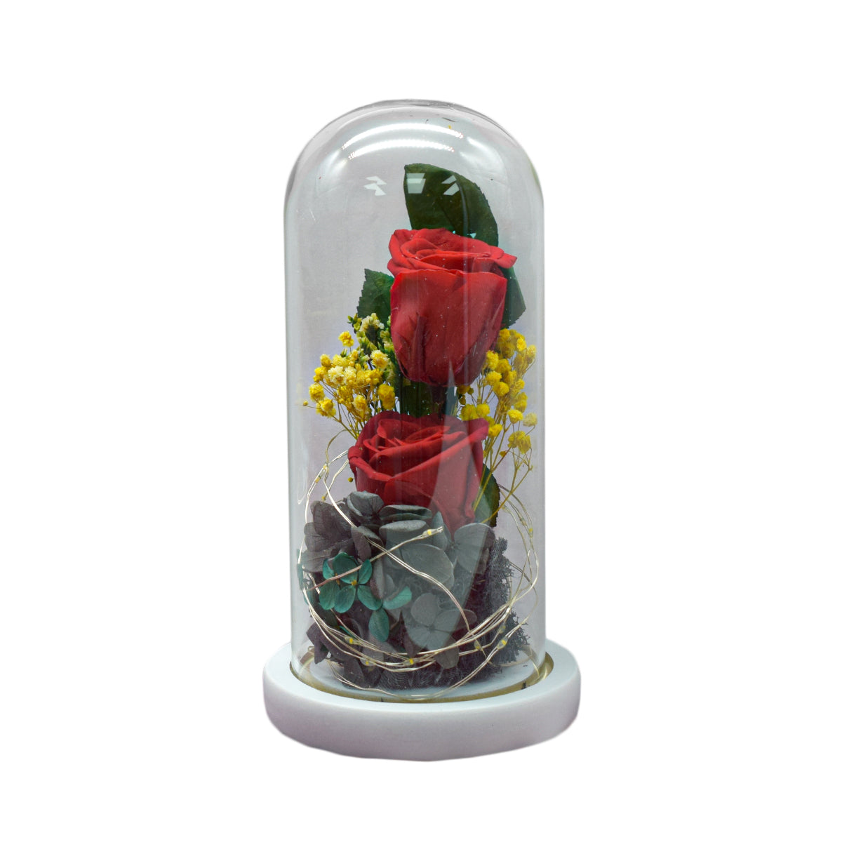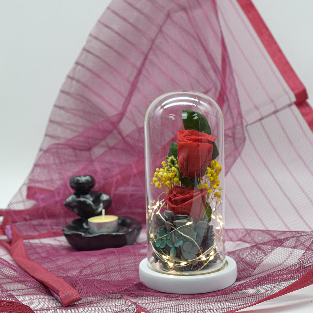 Aranjament floral in cupola de sticla, lumina Led, D4008, Rosu