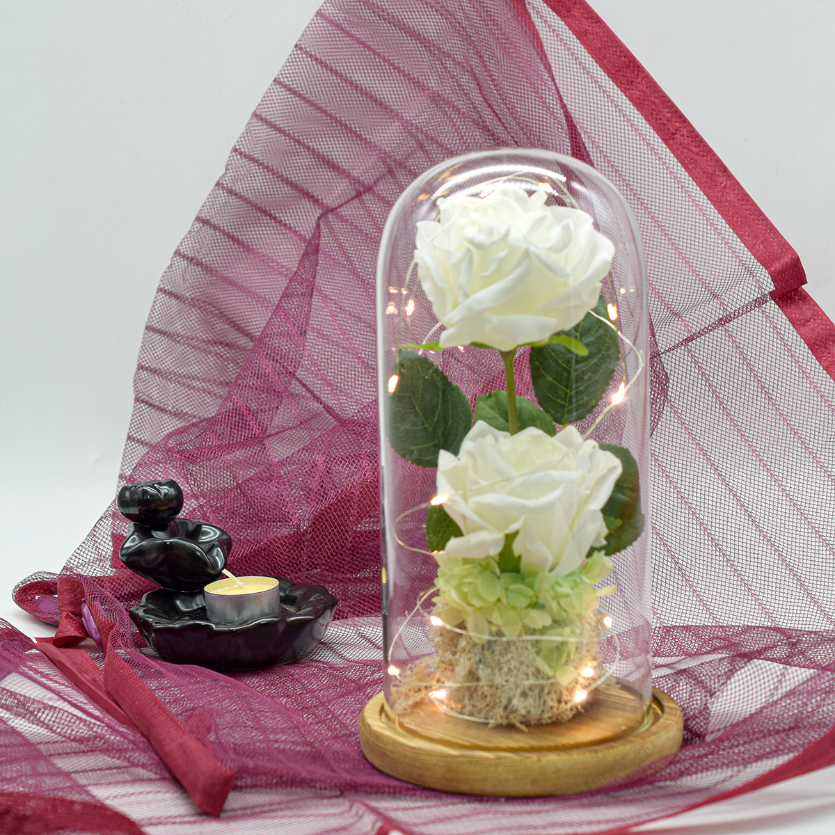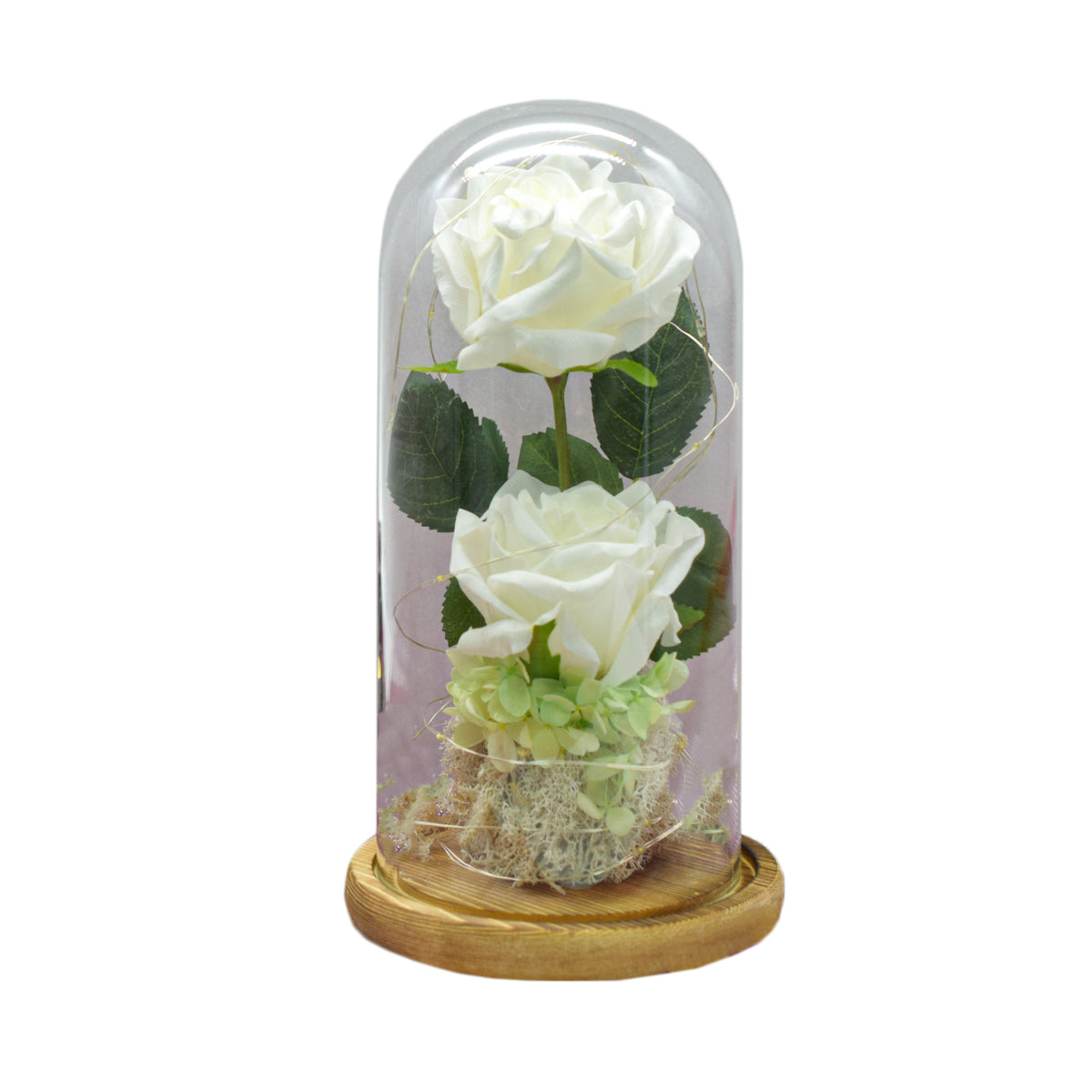 Aranjament floral in cupola de sticla, lumina Led, D4011, Alb