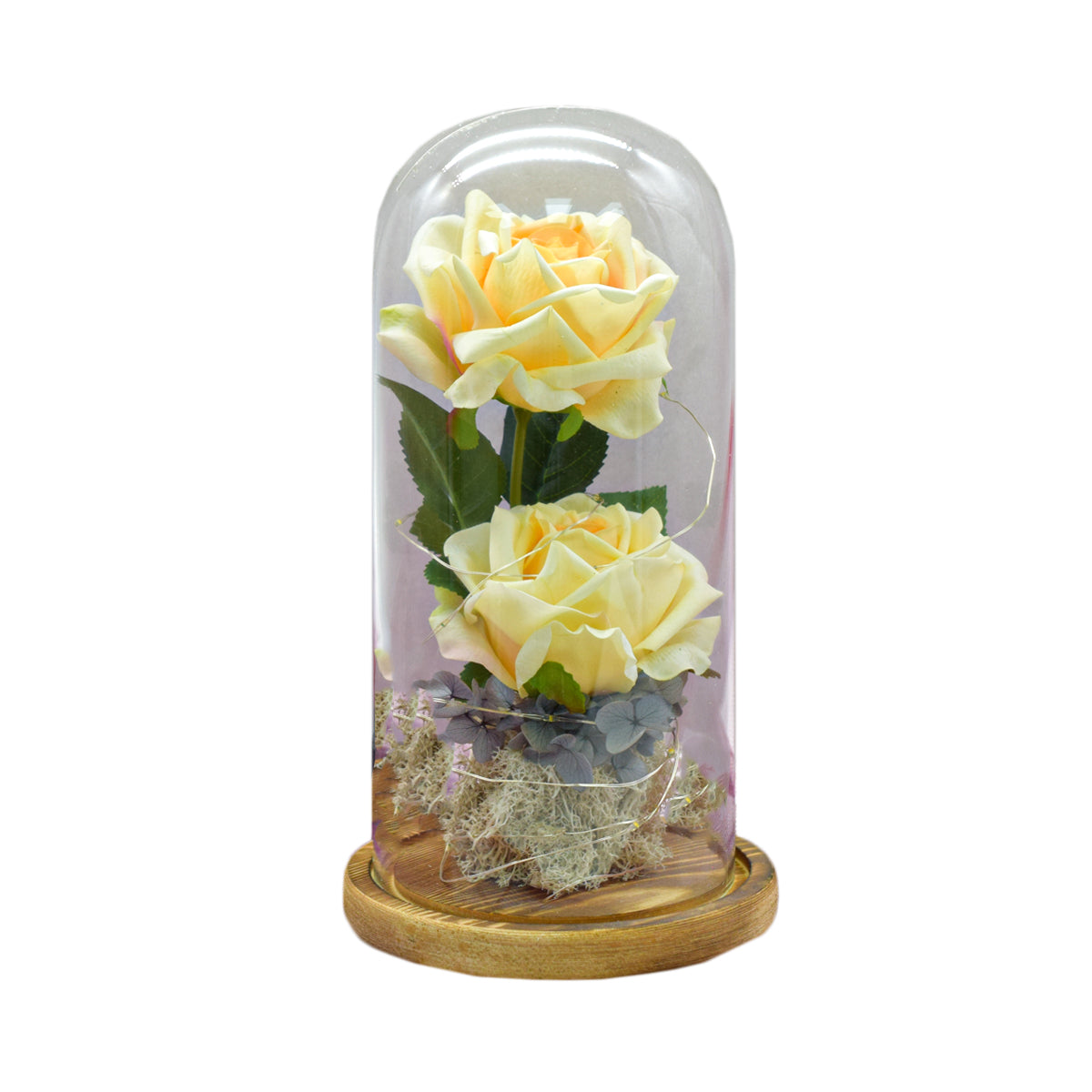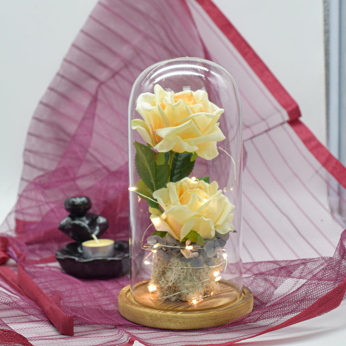 Aranjament floral in cupola de sticla, lumina Led, D4011, Portocaliu