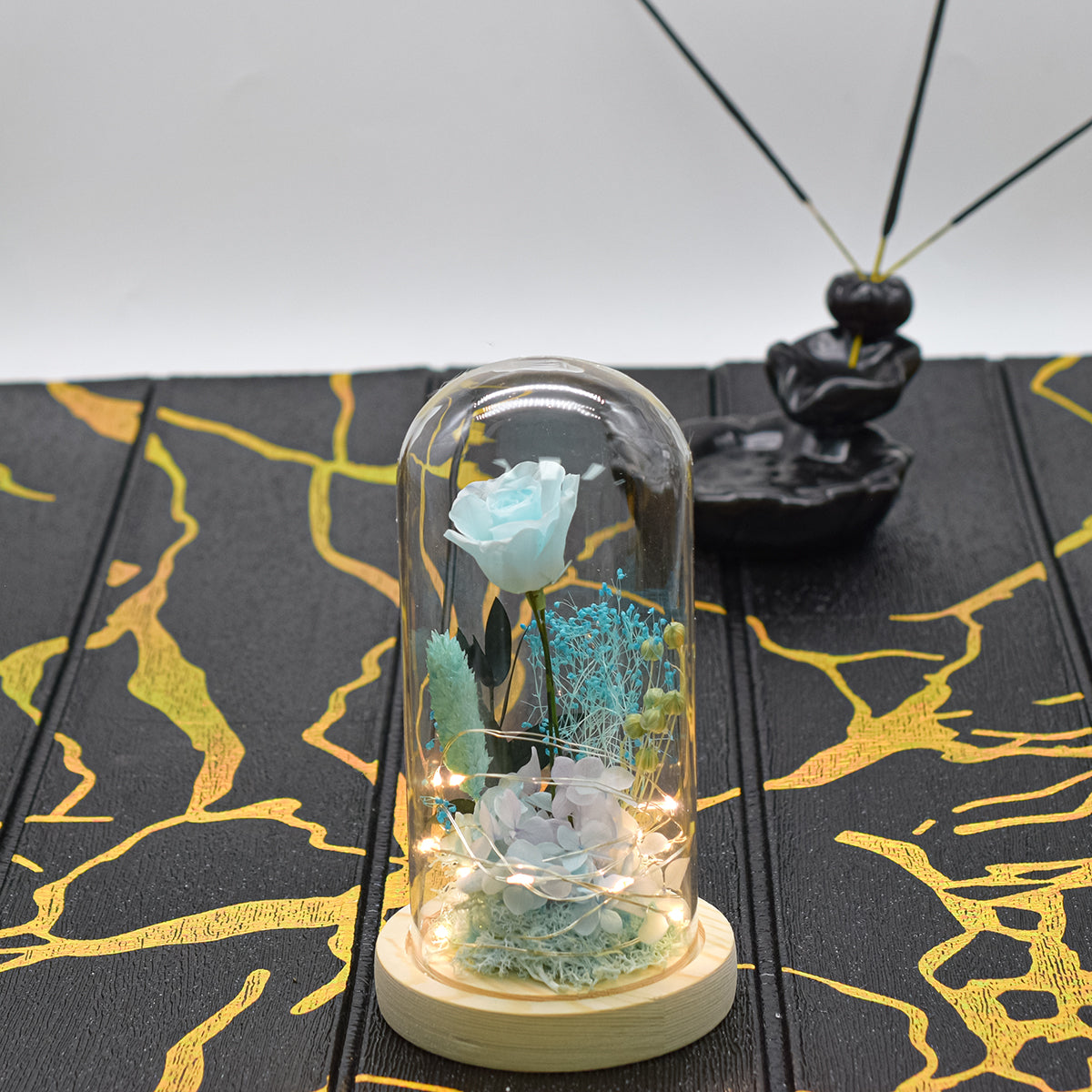 Aranjament floral in cupola de sticla, lumina Led, D4012, Blue