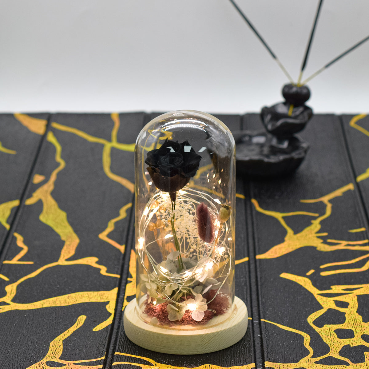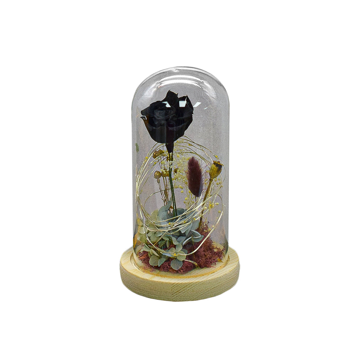 Aranjament floral in cupola de sticla, lumina Led, D4012, Negru