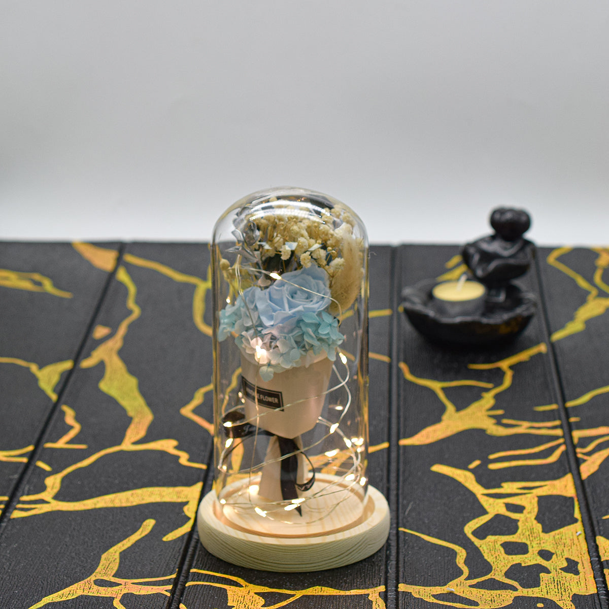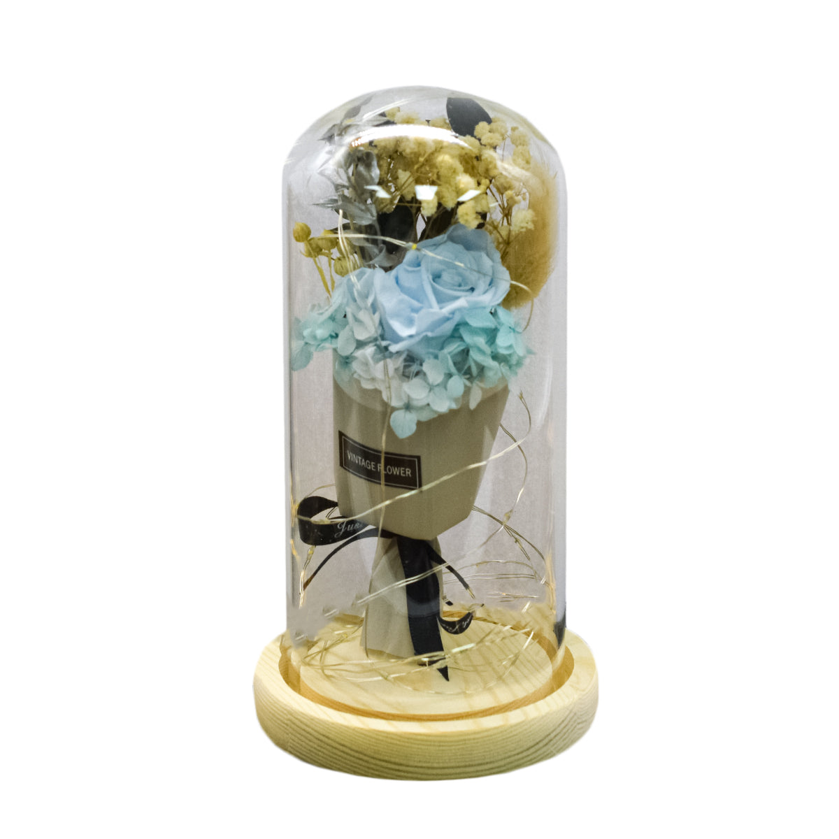 Aranjament floral in cupola de sticla, lumina Led, D4015, Albastru