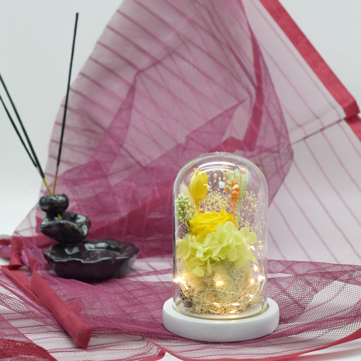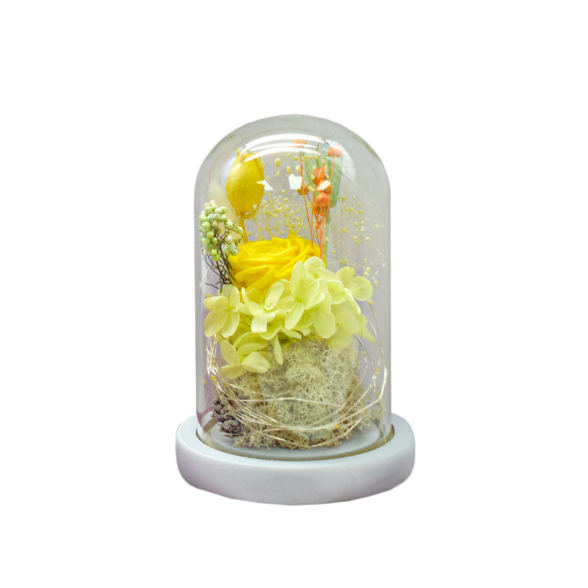 Aranjament floral in cupola de sticla, lumina Led, D4017, Galben