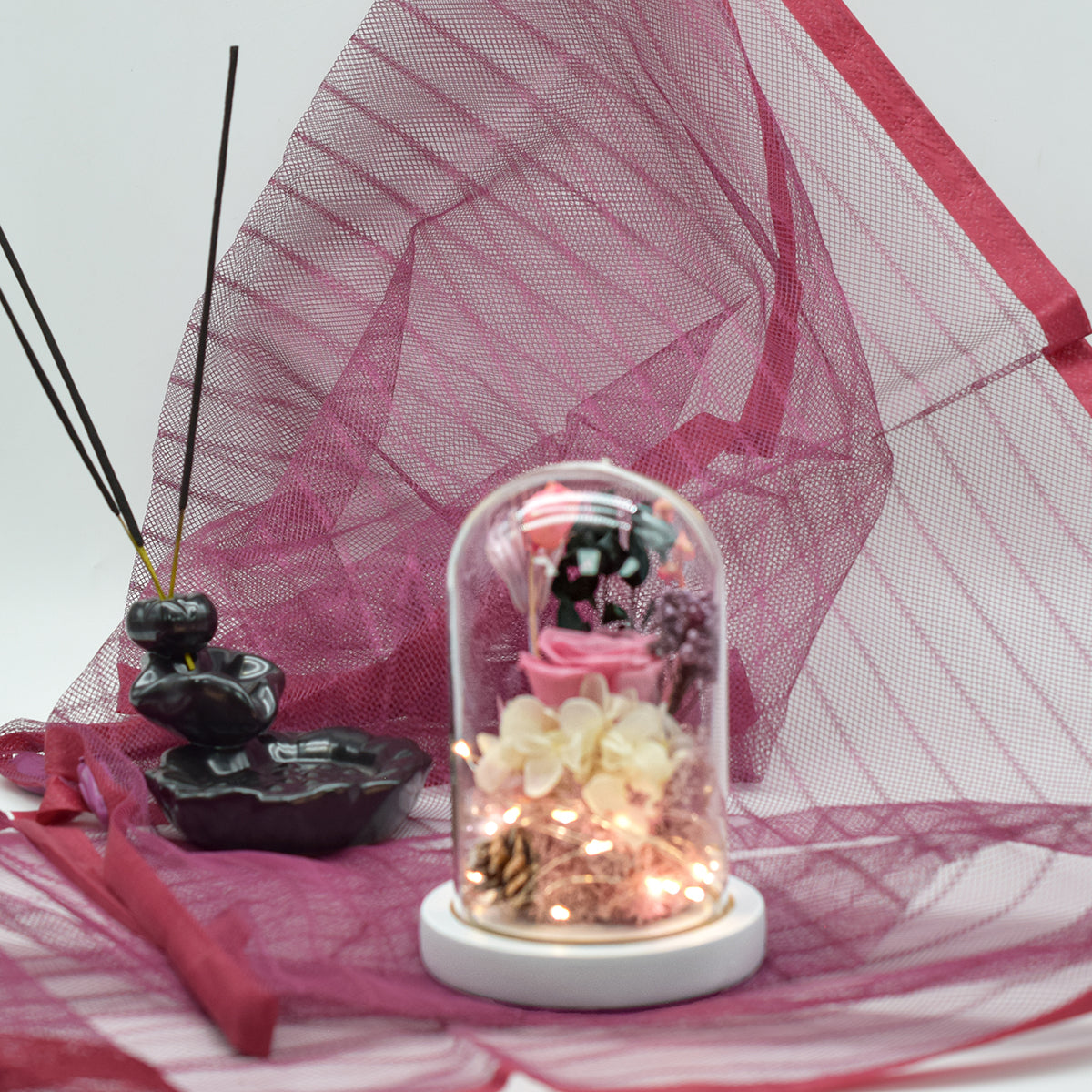 Aranjament floral in cupola de sticla, lumina Led, D4017, Roz