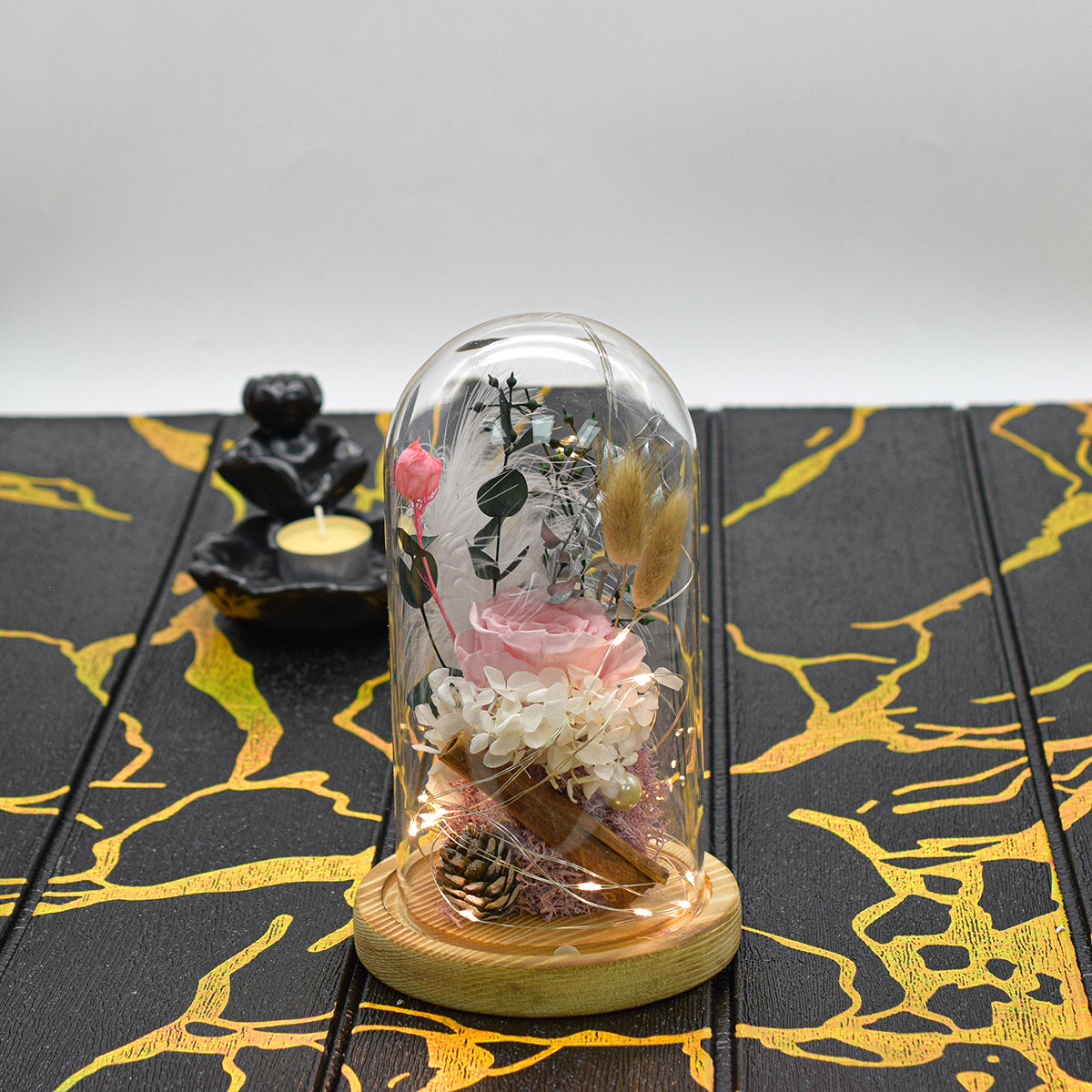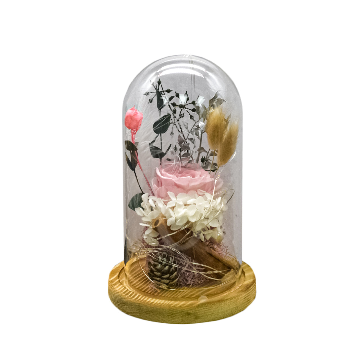Aranjament floral in cupola de sticla, lumina Led, D4018, Roz
