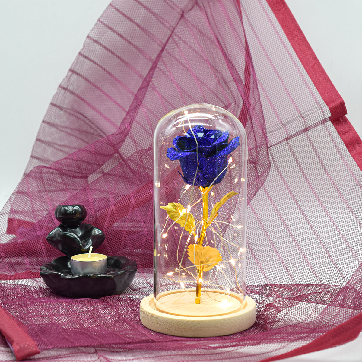 Aranjament floral in cupola de sticla, lumina Led, D4019, Albastru