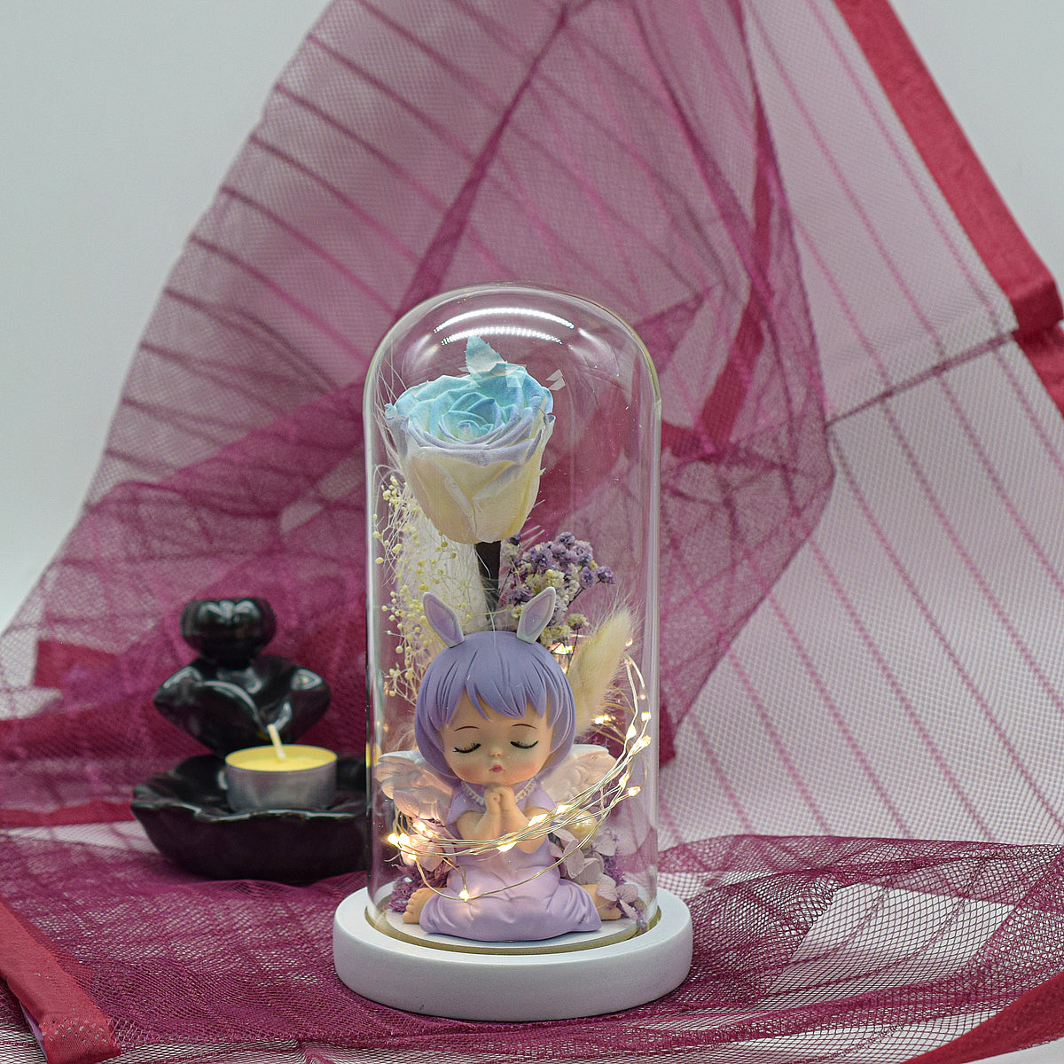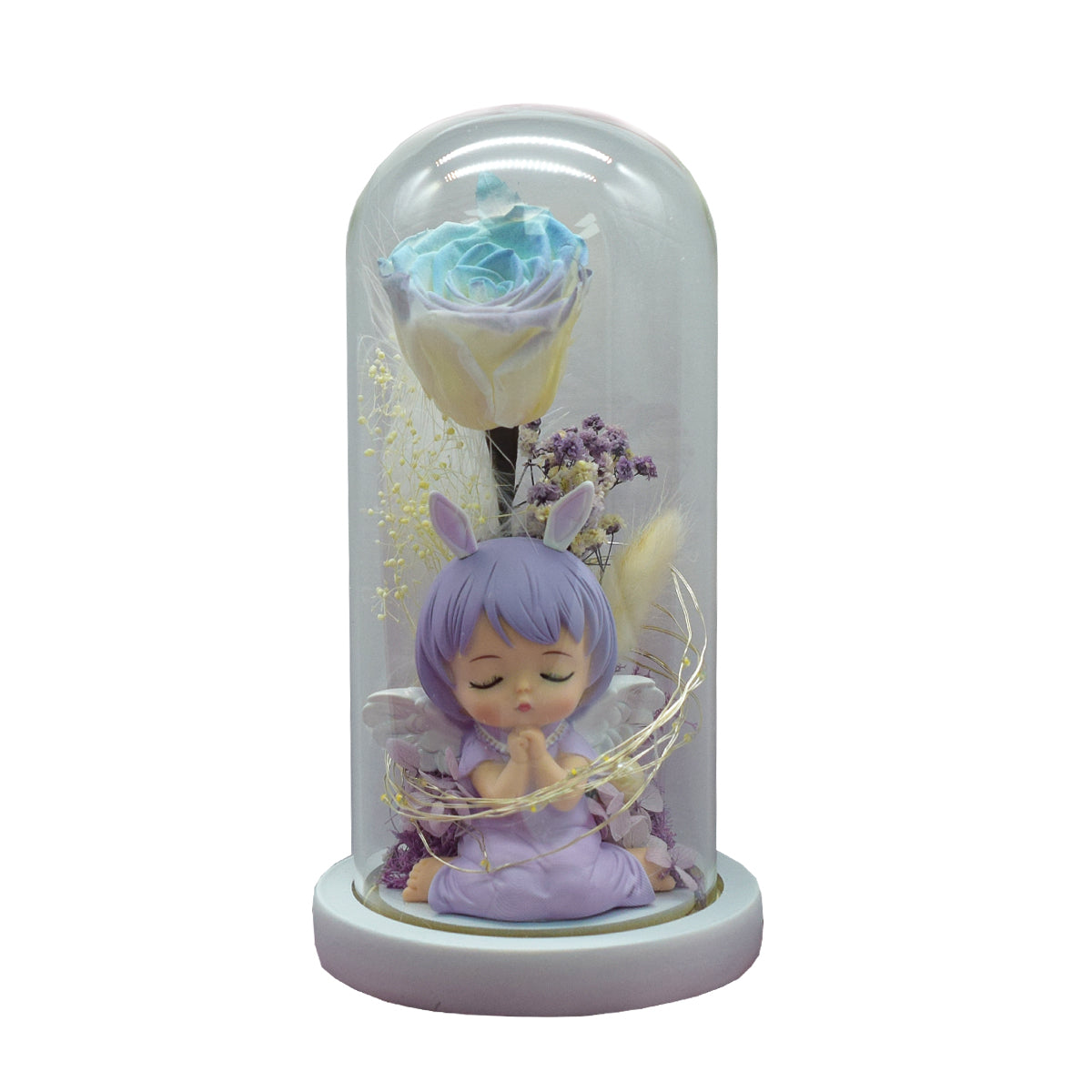 Aranjament floral in cupola de sticla, lumina Led, D4020, Mov