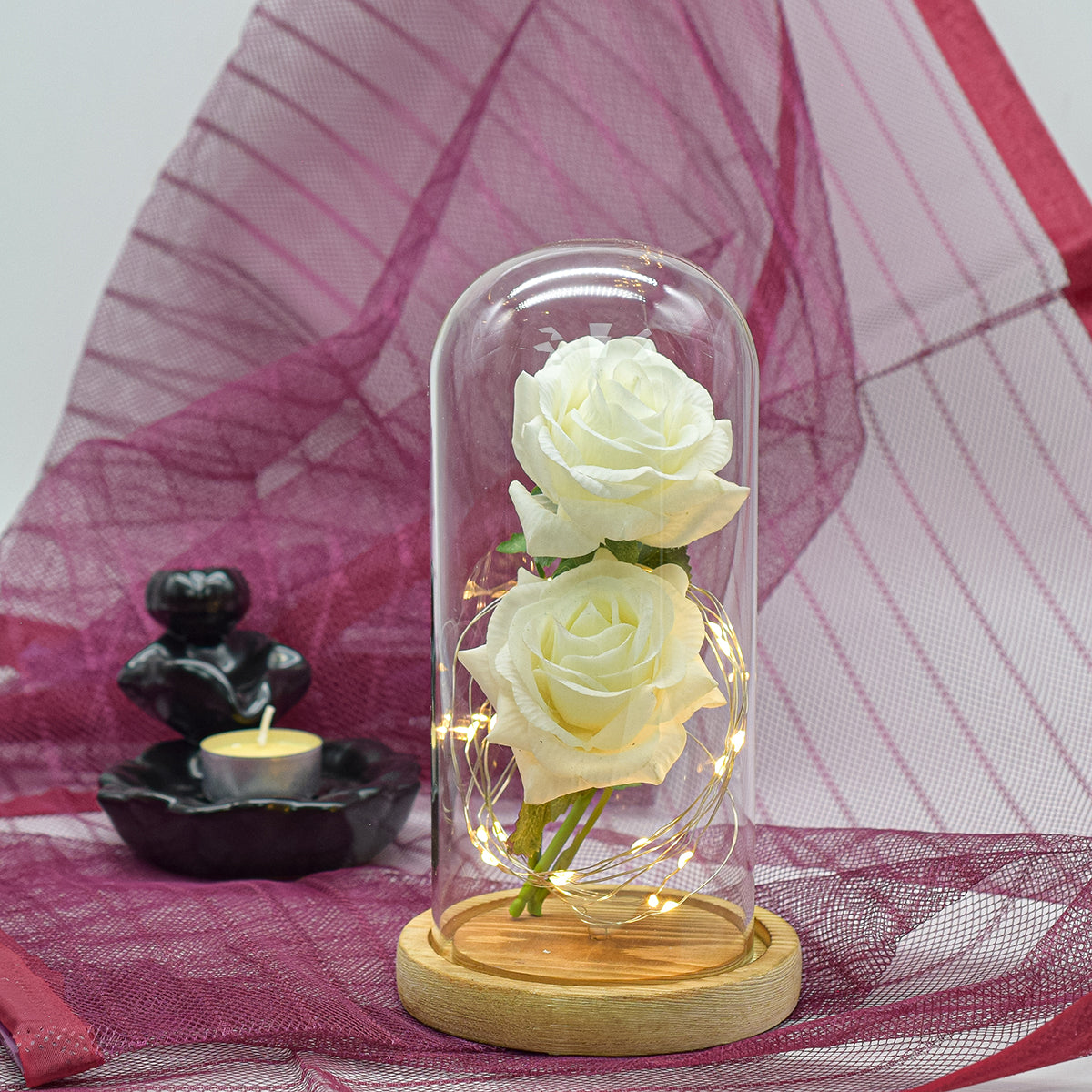 Aranjament floral in cupola de sticla, lumina Led, D4022, Alb