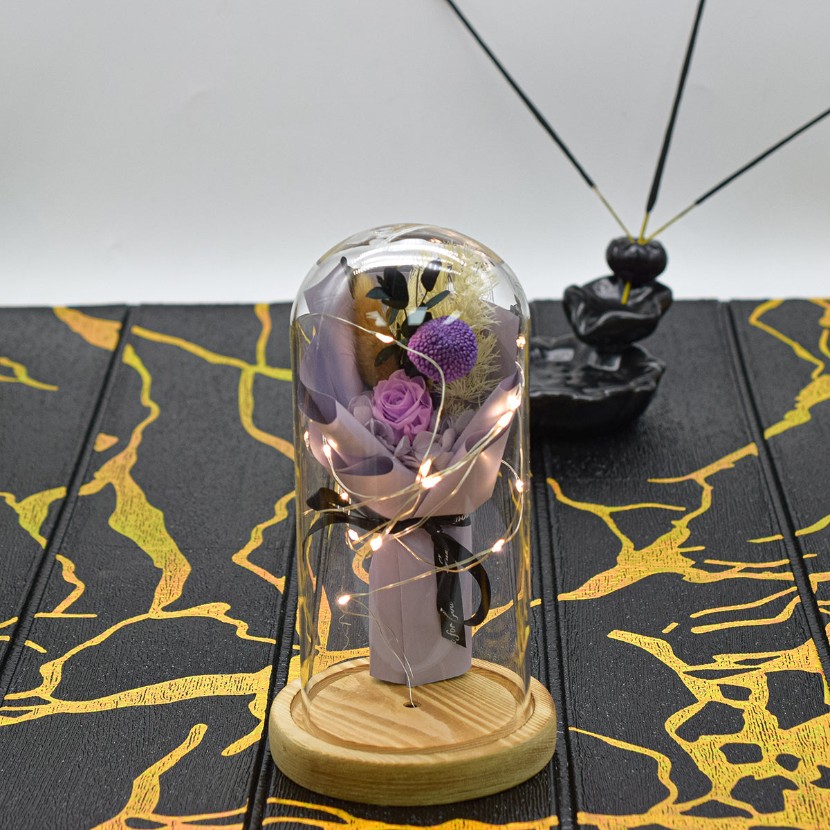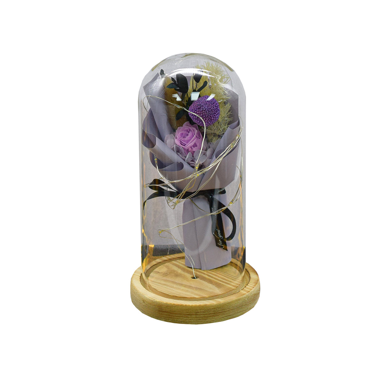 Aranjament floral in cupola de sticla, lumina Led, D4023, Mov