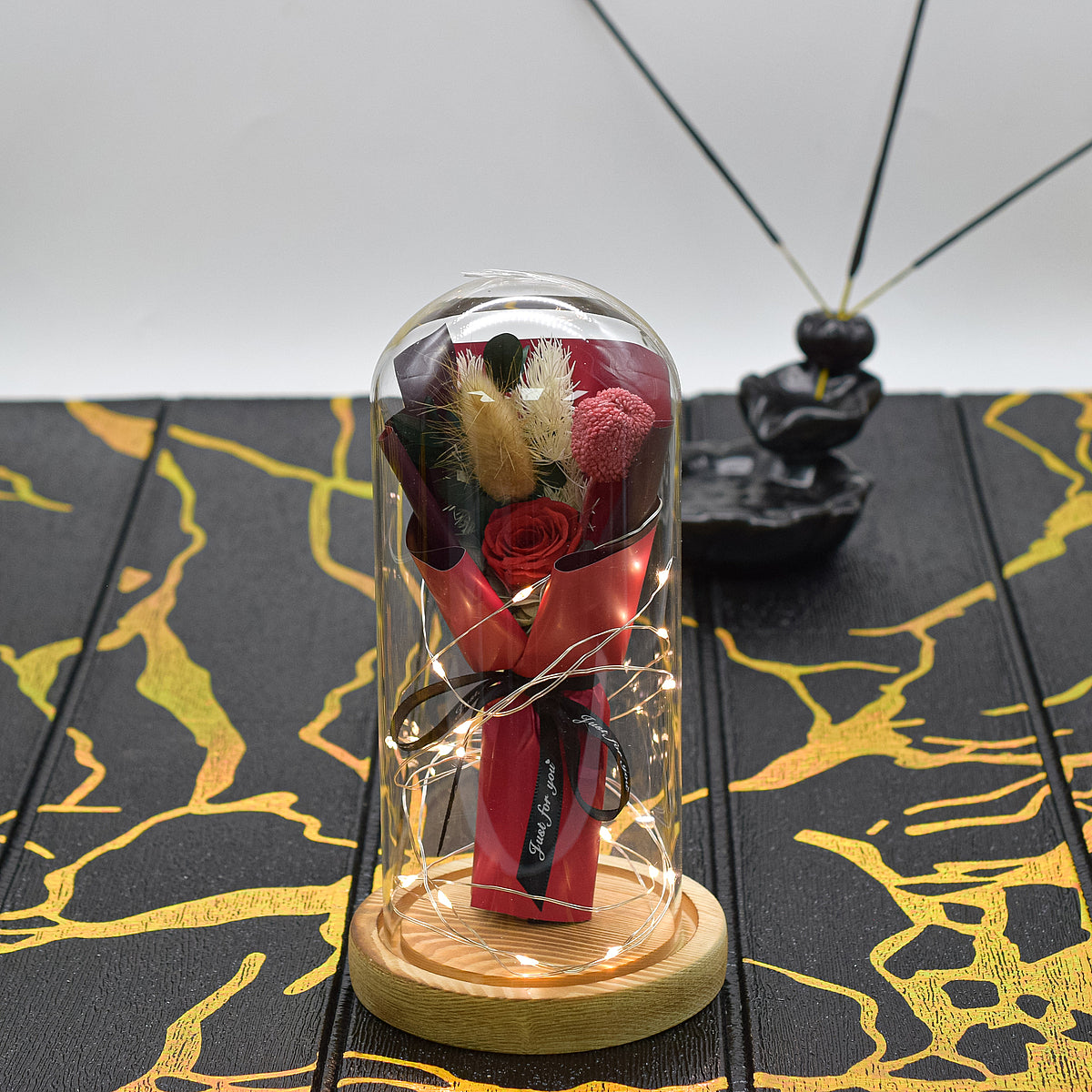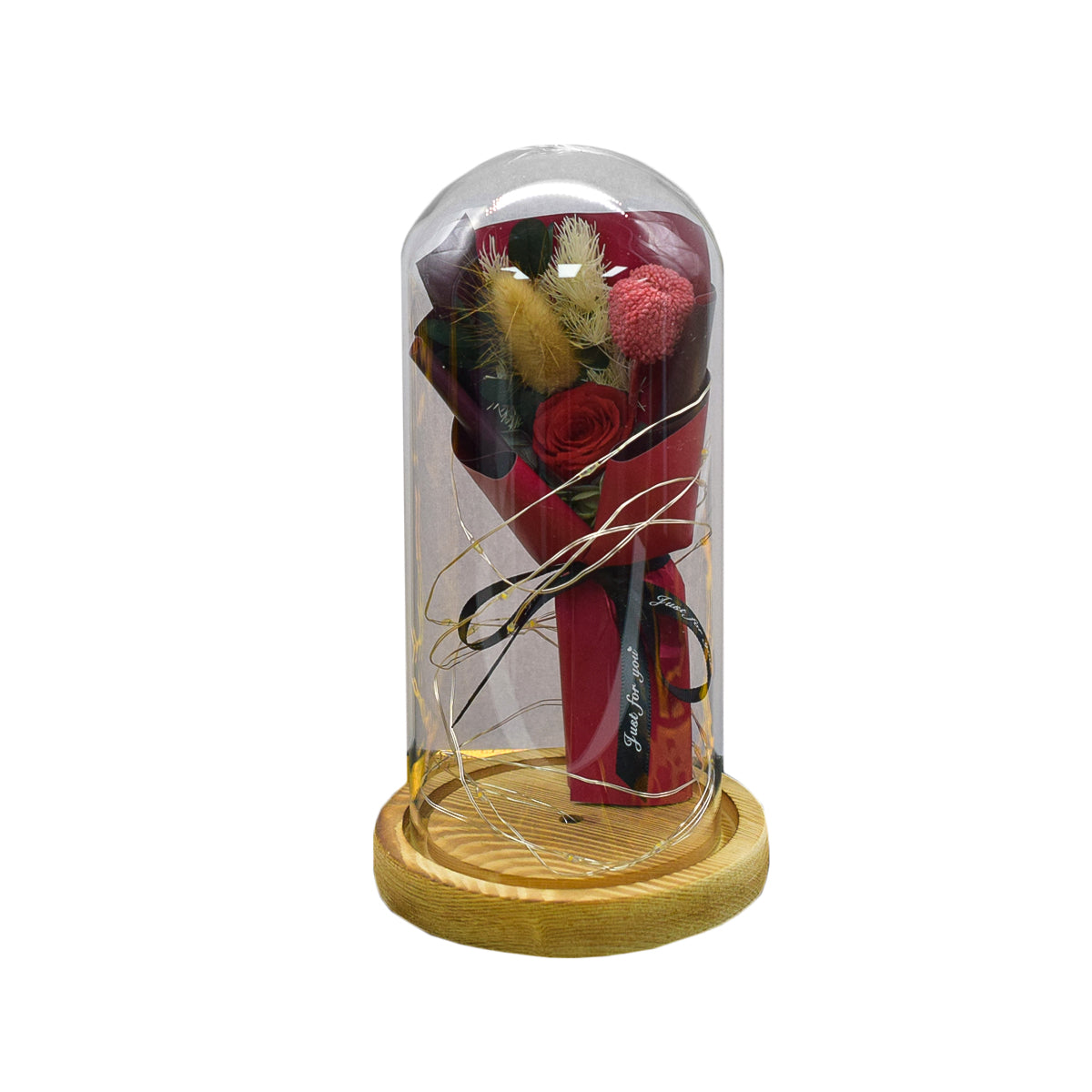 Aranjament floral in cupola de sticla, lumina Led, D4023, Rosu