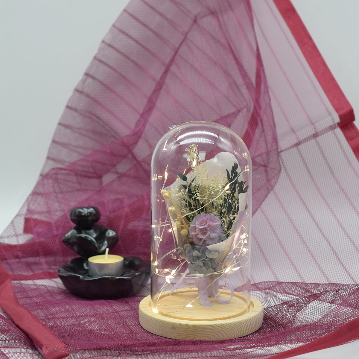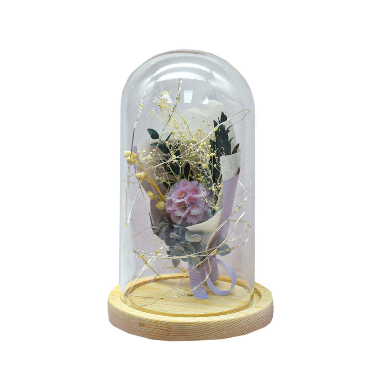 Aranjament floral in cupola de sticla, lumina Led, D4026, Mov