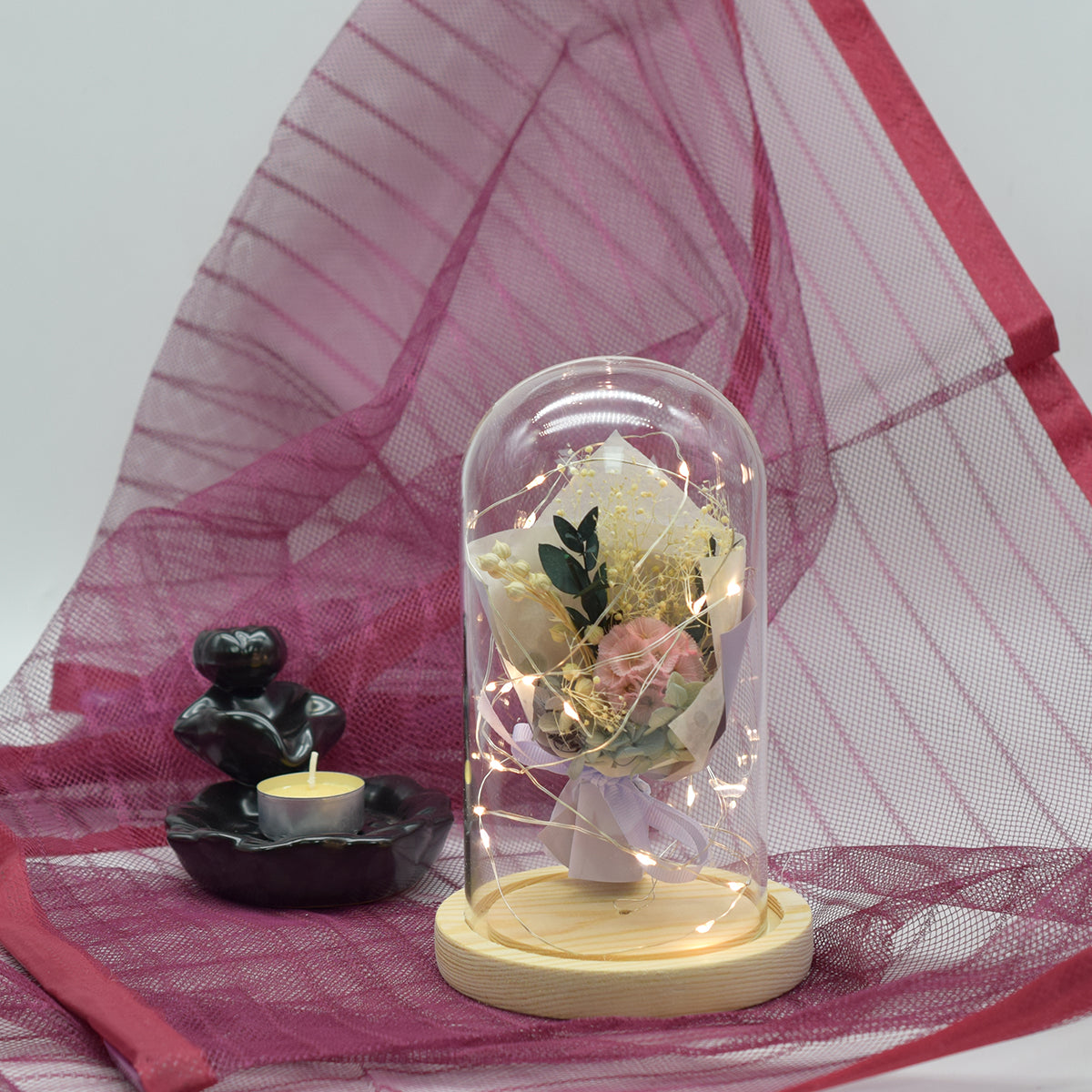 Aranjament floral in cupola de sticla, lumina Led, D4026, Roz