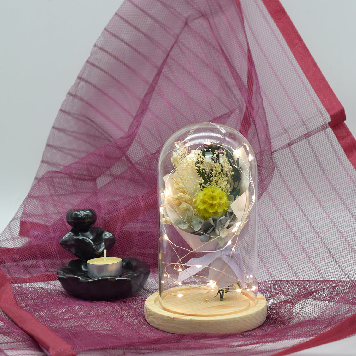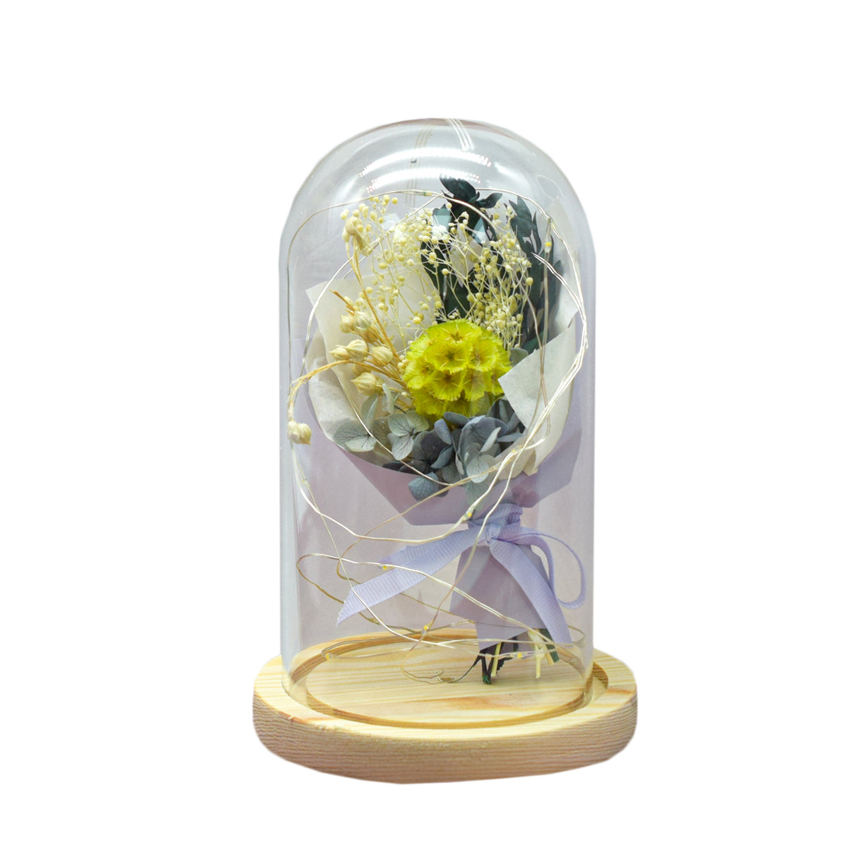 Aranjament floral in cupola de sticla, lumina Led, D4026, Verde