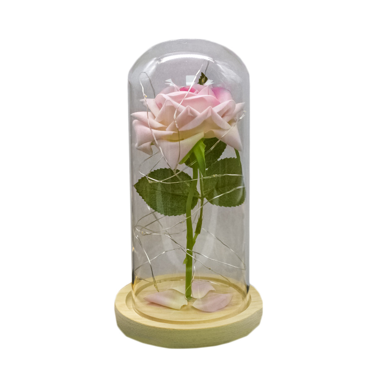 Aranjament floral in cupola de sticla, lumina Led, D4028, Roz pal