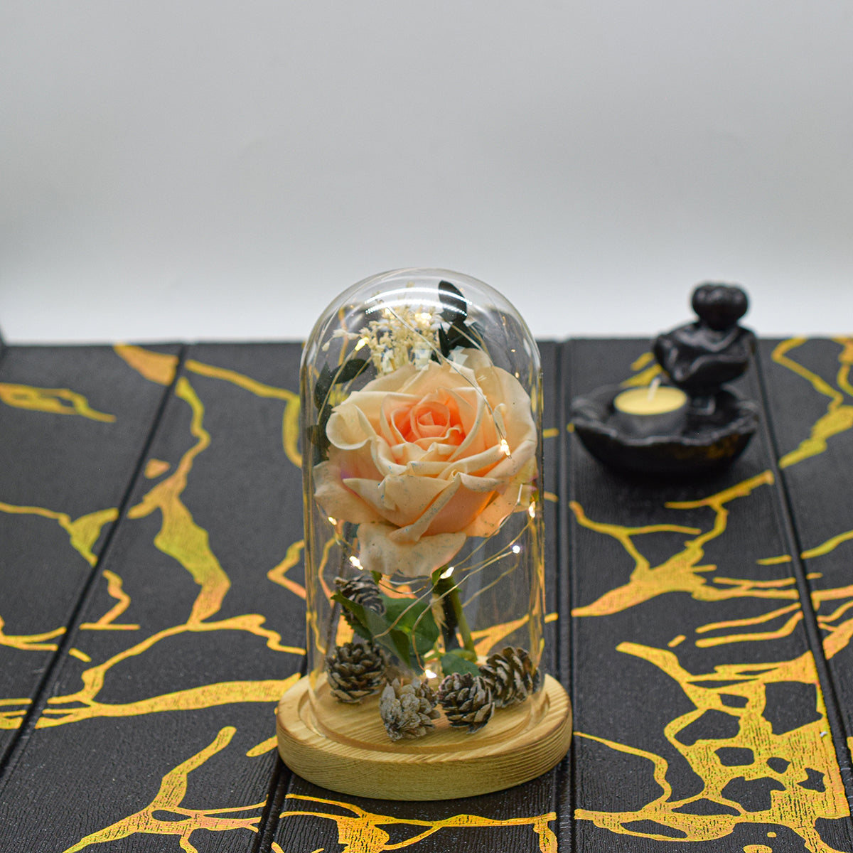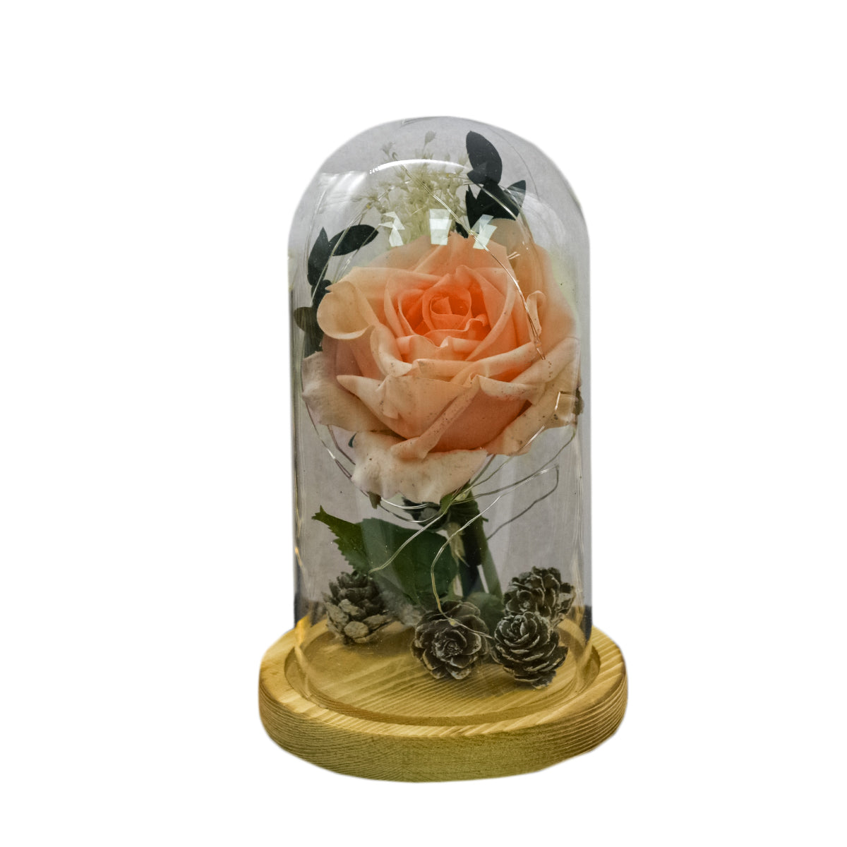 Aranjament floral in cupola de sticla, lumina Led, D4029, Portocaliu