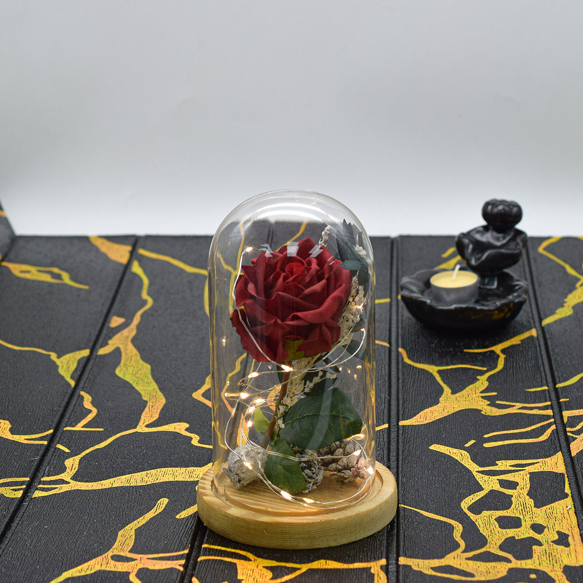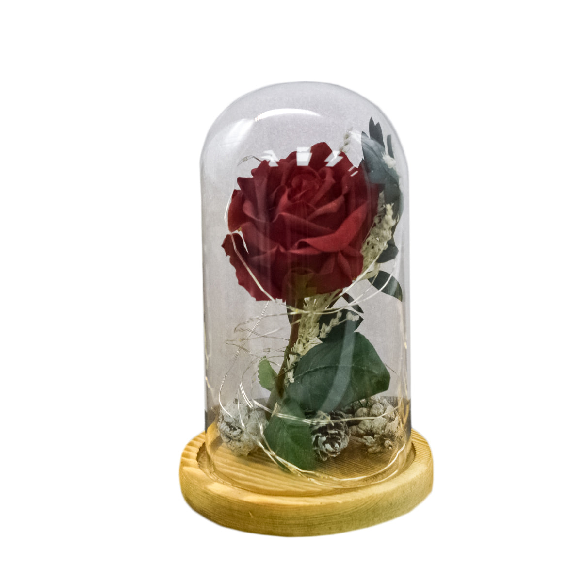 Aranjament floral in cupola de sticla, lumina Led, D4029, Rosu